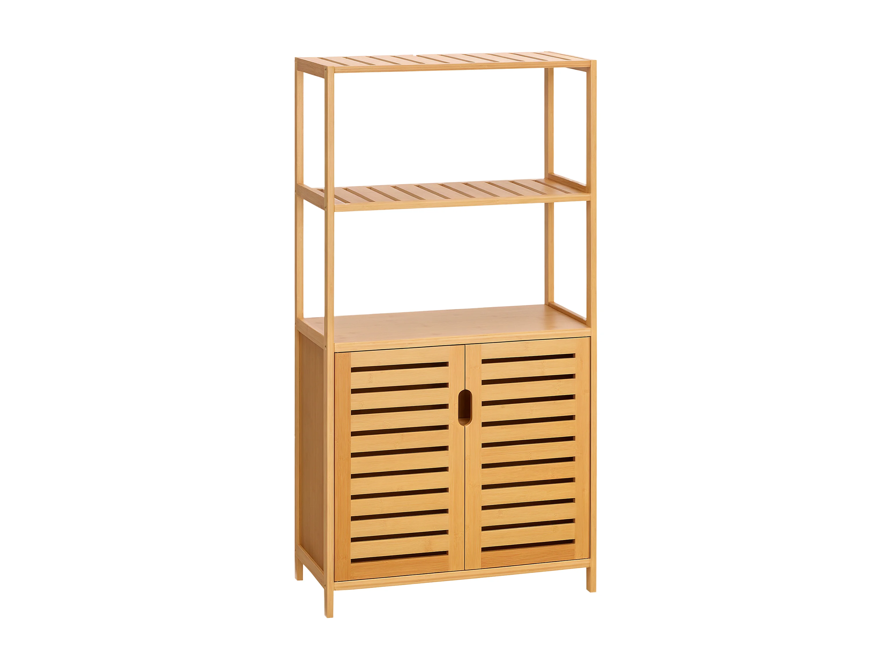 Armadietto bagno con 2 ripiani aperti e armadietto 2 livelli