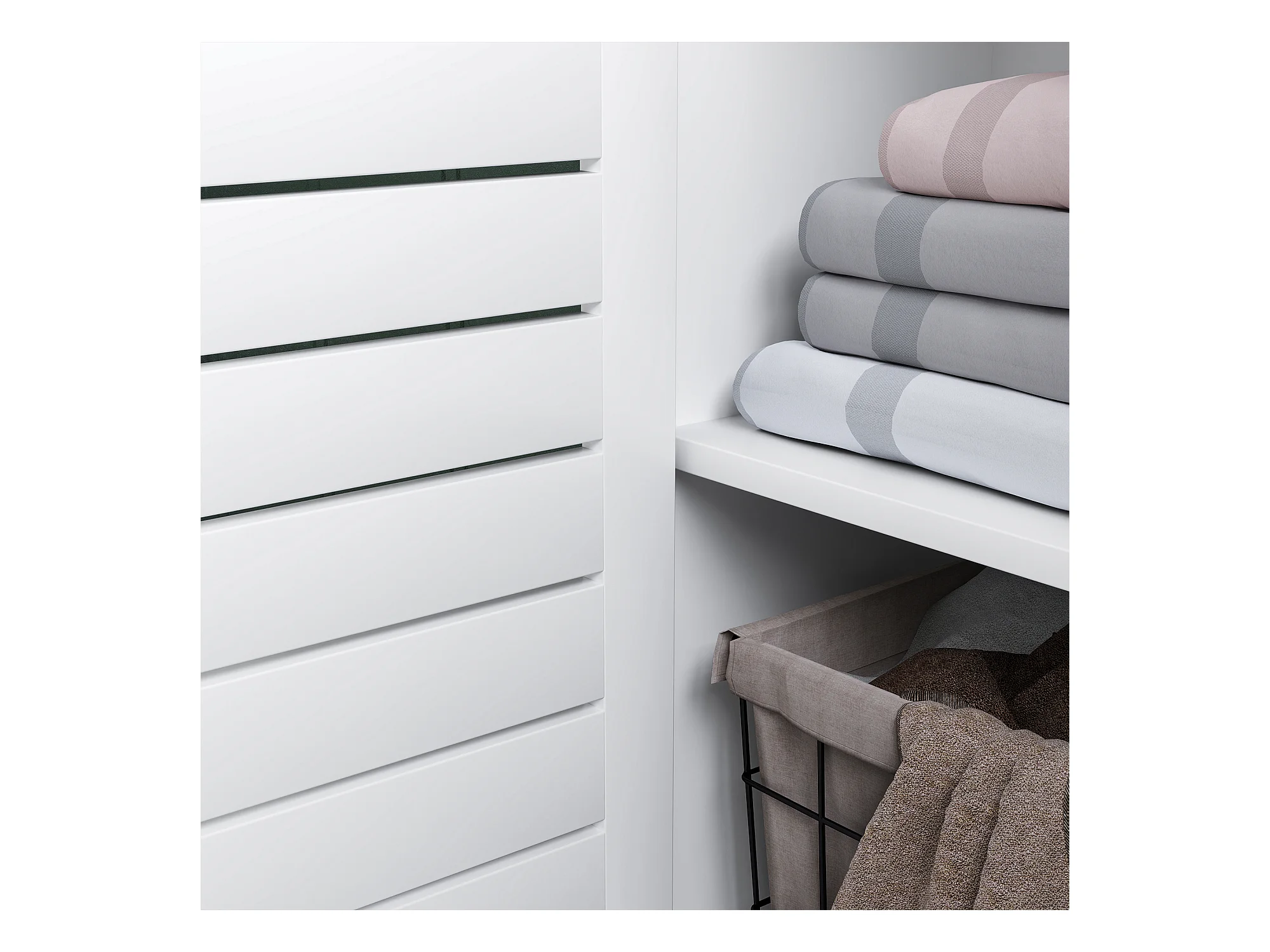 Colonna bagno con 2 armadietti, 3 ripiani aperti e cassetto bianco