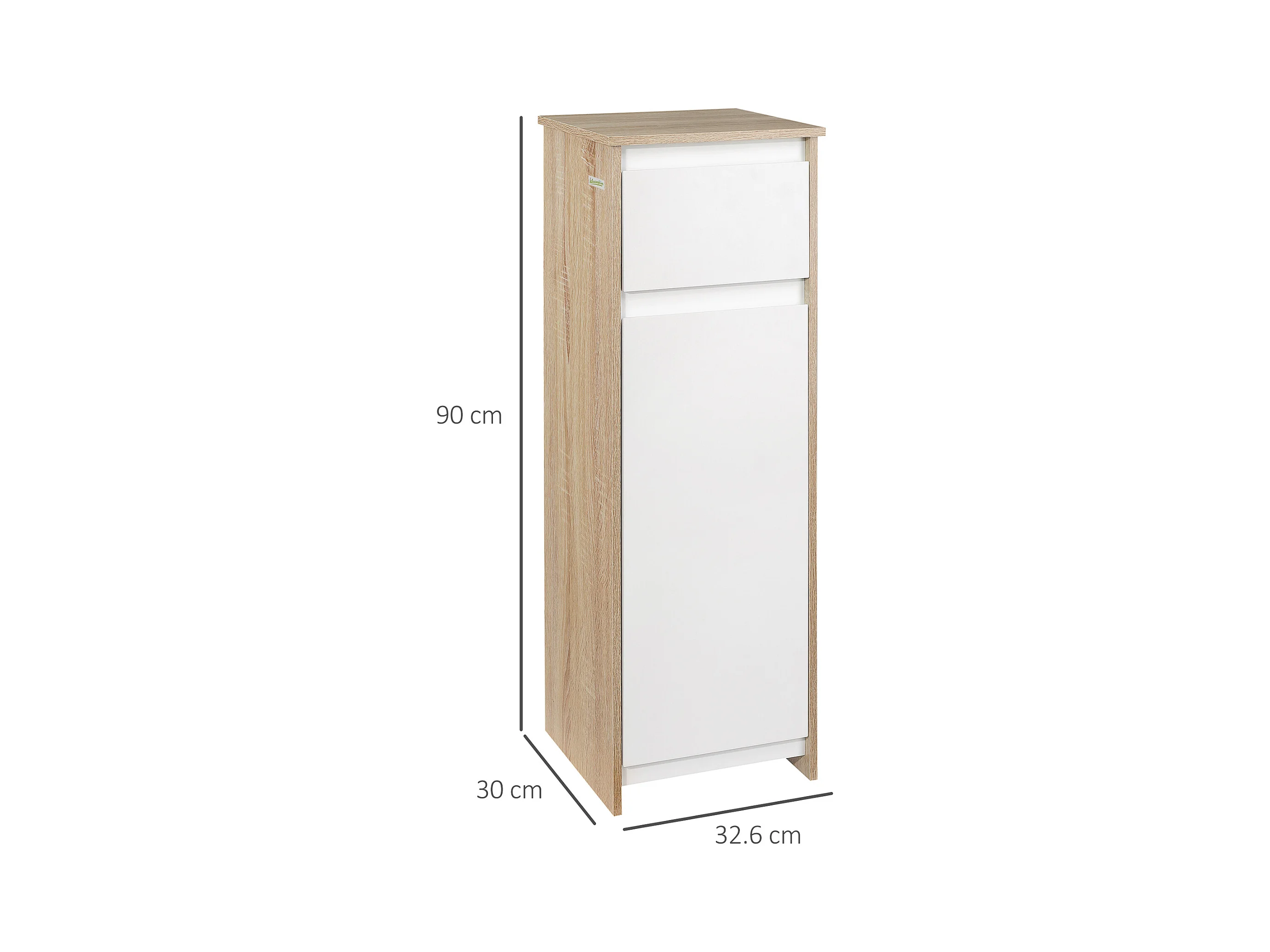 Mobiletto da bagno con anta a cestone e ripiani regolabili, MDF, bianco (66,6x29,8x86,5 cm)