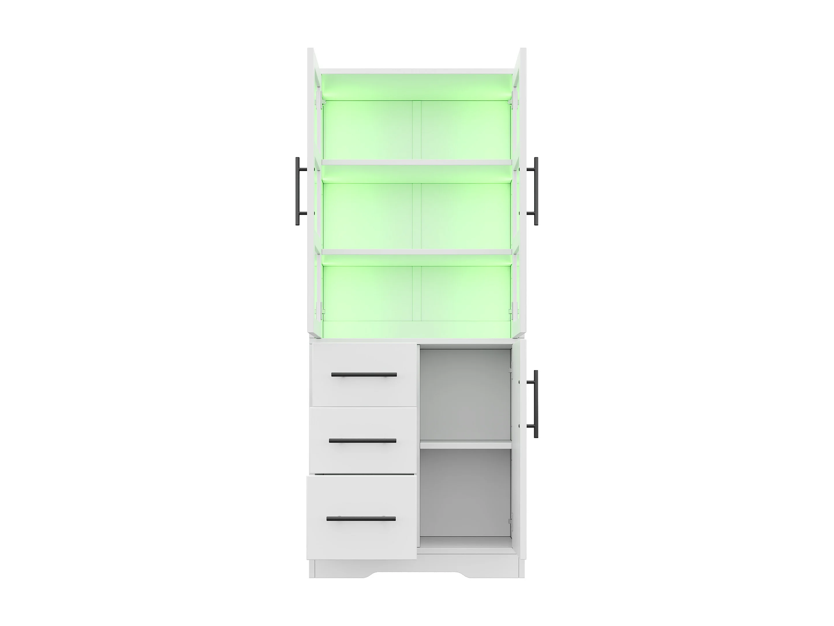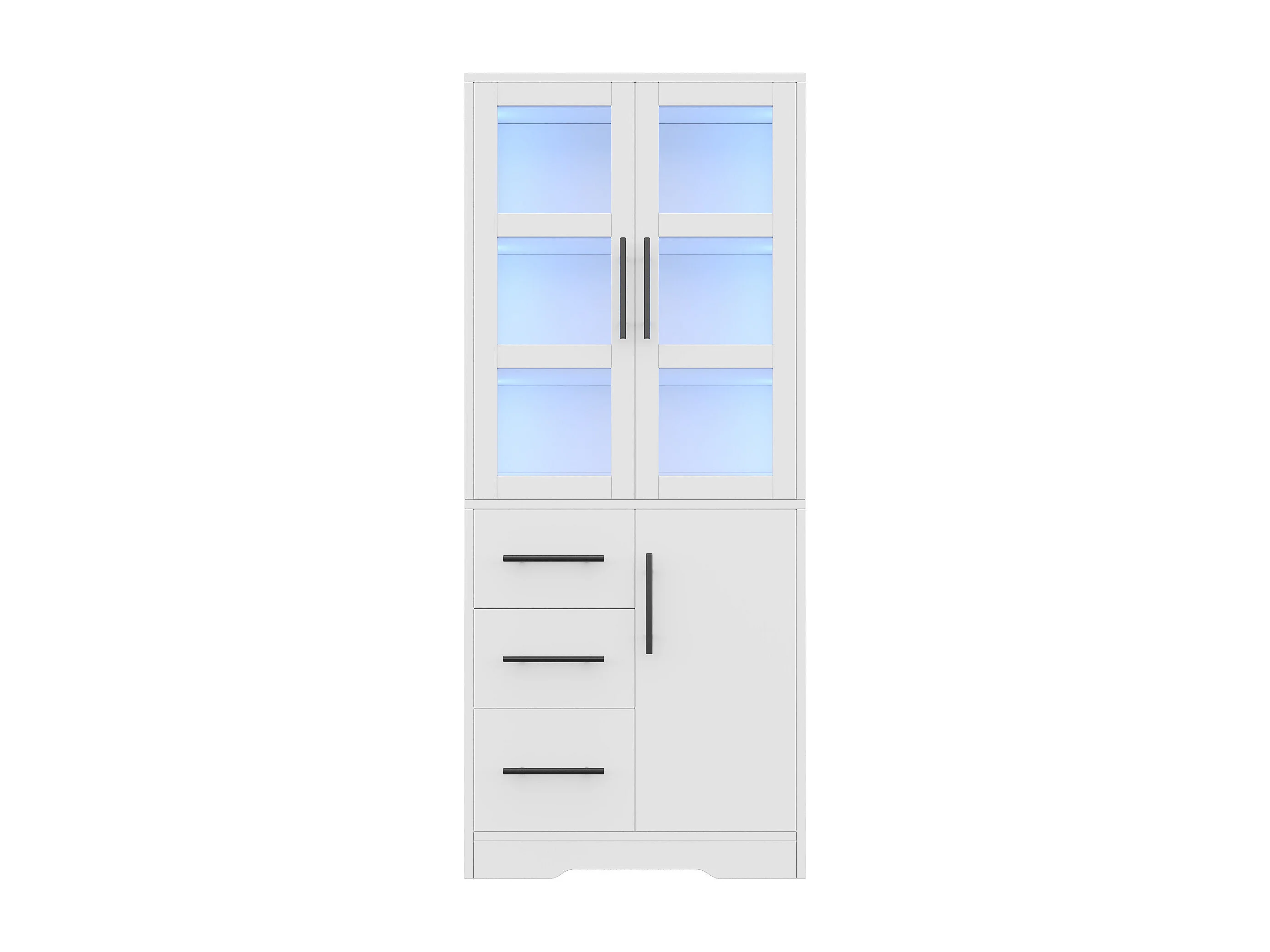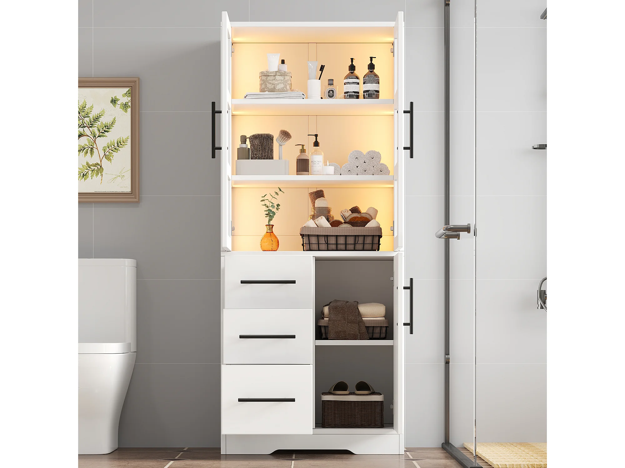 Mobile bagno con lavabo - 72 x 35 x 170 cm - con LED + doppie ante in vetro + 3 cassetti + 2 ante - MDF + vetro - bianco
