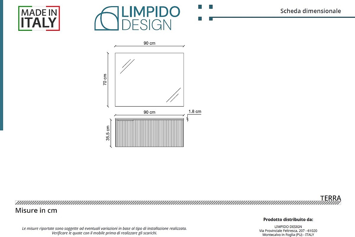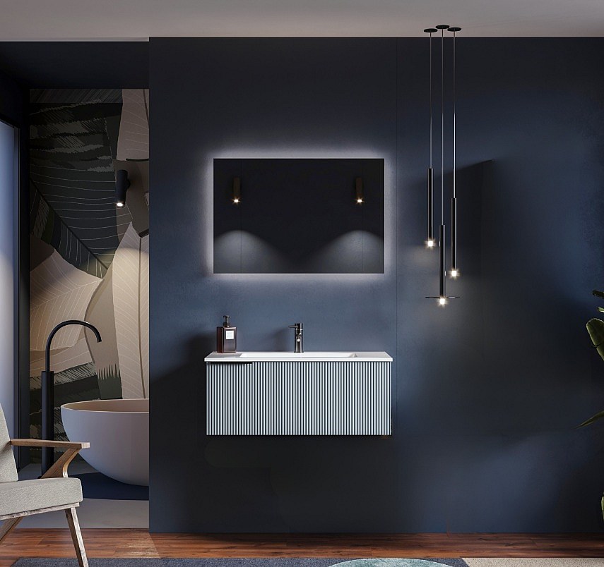 Mobile bagno con lavabo integrato L 90 x H 35,5 x P 46 Azzurro Opaco e Specchio