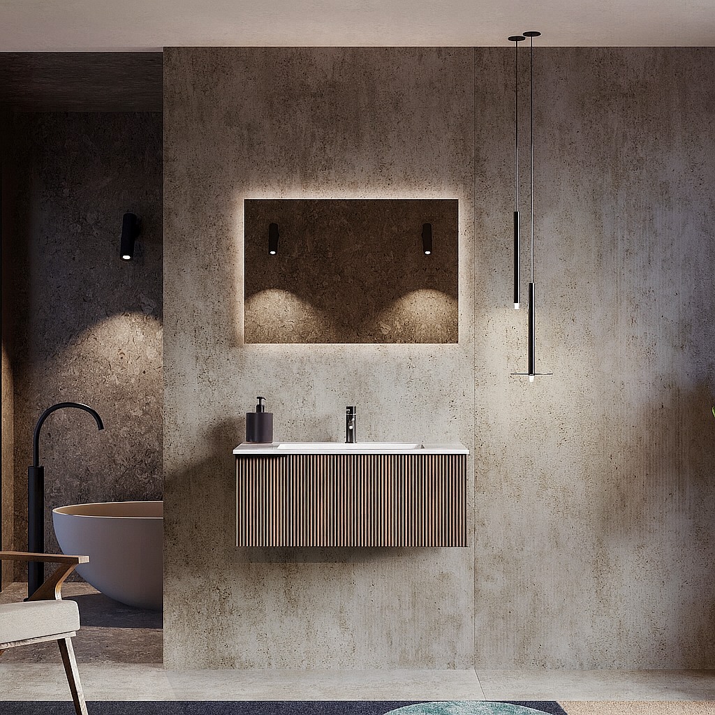 Mobile bagno con lavabo integrato L 90 x H 35,5 x P 46 Noce Nordico Scuro e Specchio