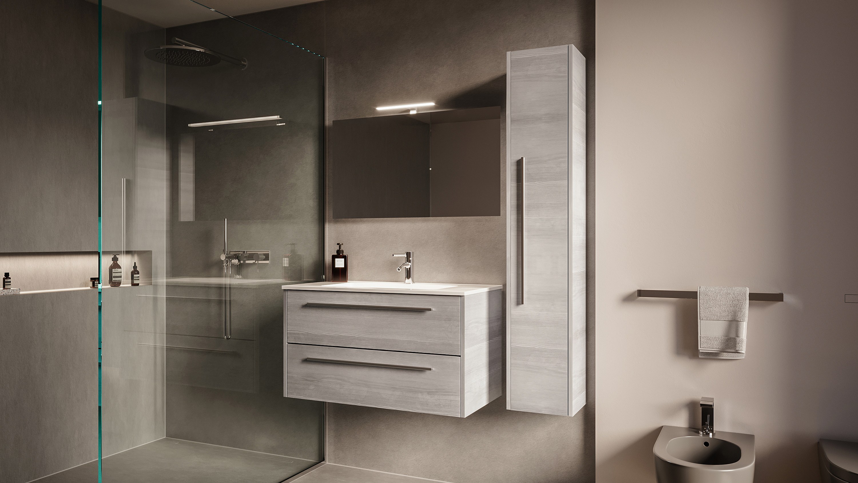 Mobile bagno con lavabo integrato L 90 x H 45 x P 46 Larice Cenere Colonna e Specchio