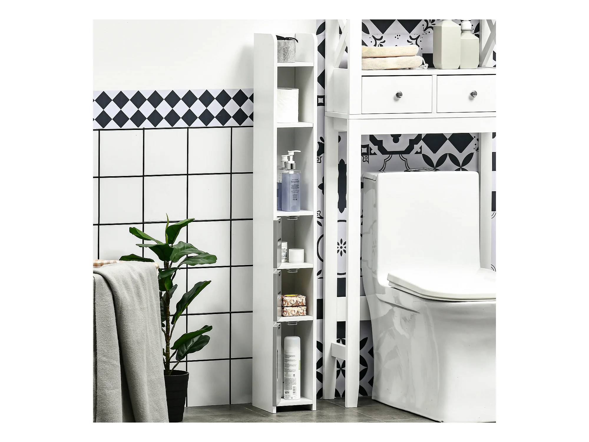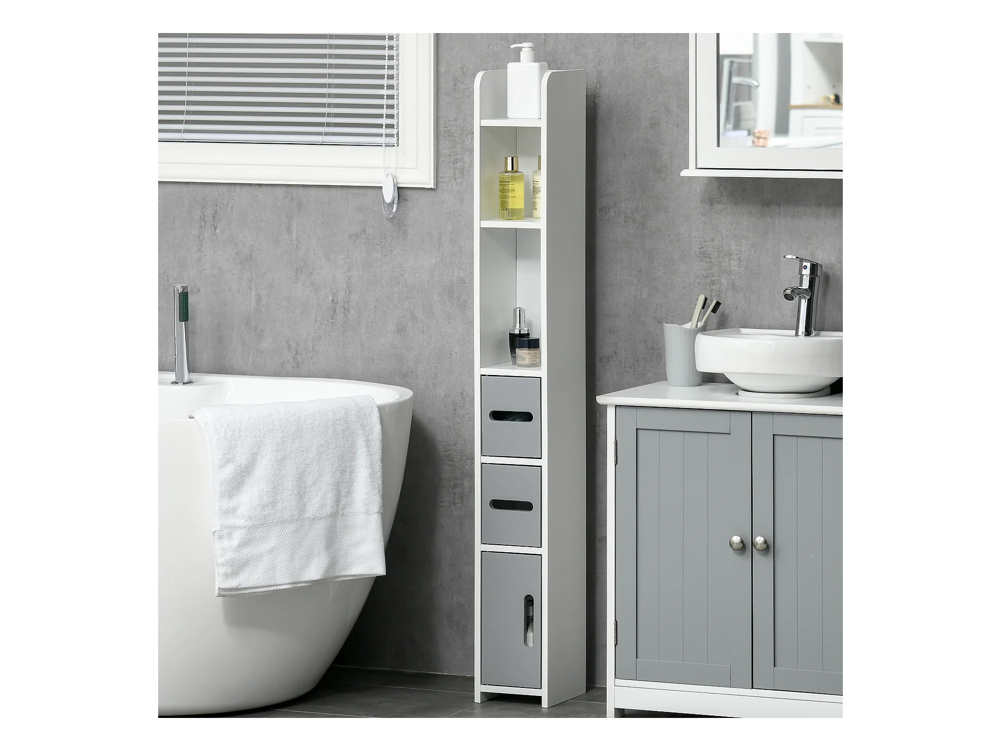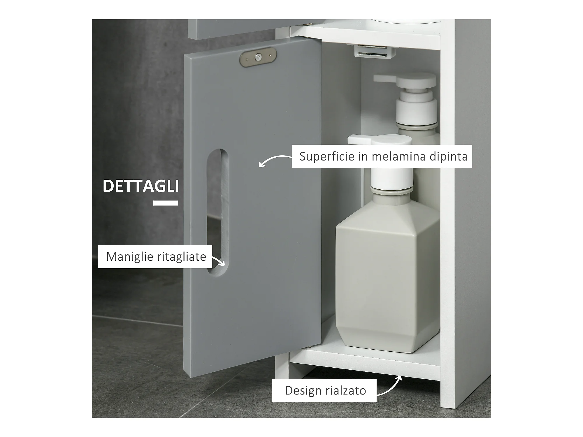 Mobiletto a colonna da bagno salvaspazio in legno bianco e grigio