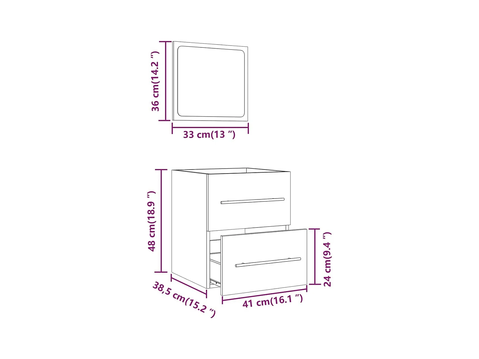 Mobile bagno con specchio Rovere affumicato 41x38,5x48 cm