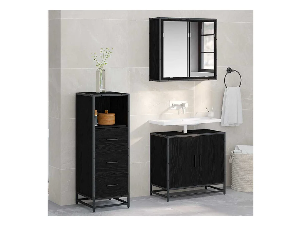 Set di mobili da bagno in legno ingegnerizzato nero, 2 pezzi