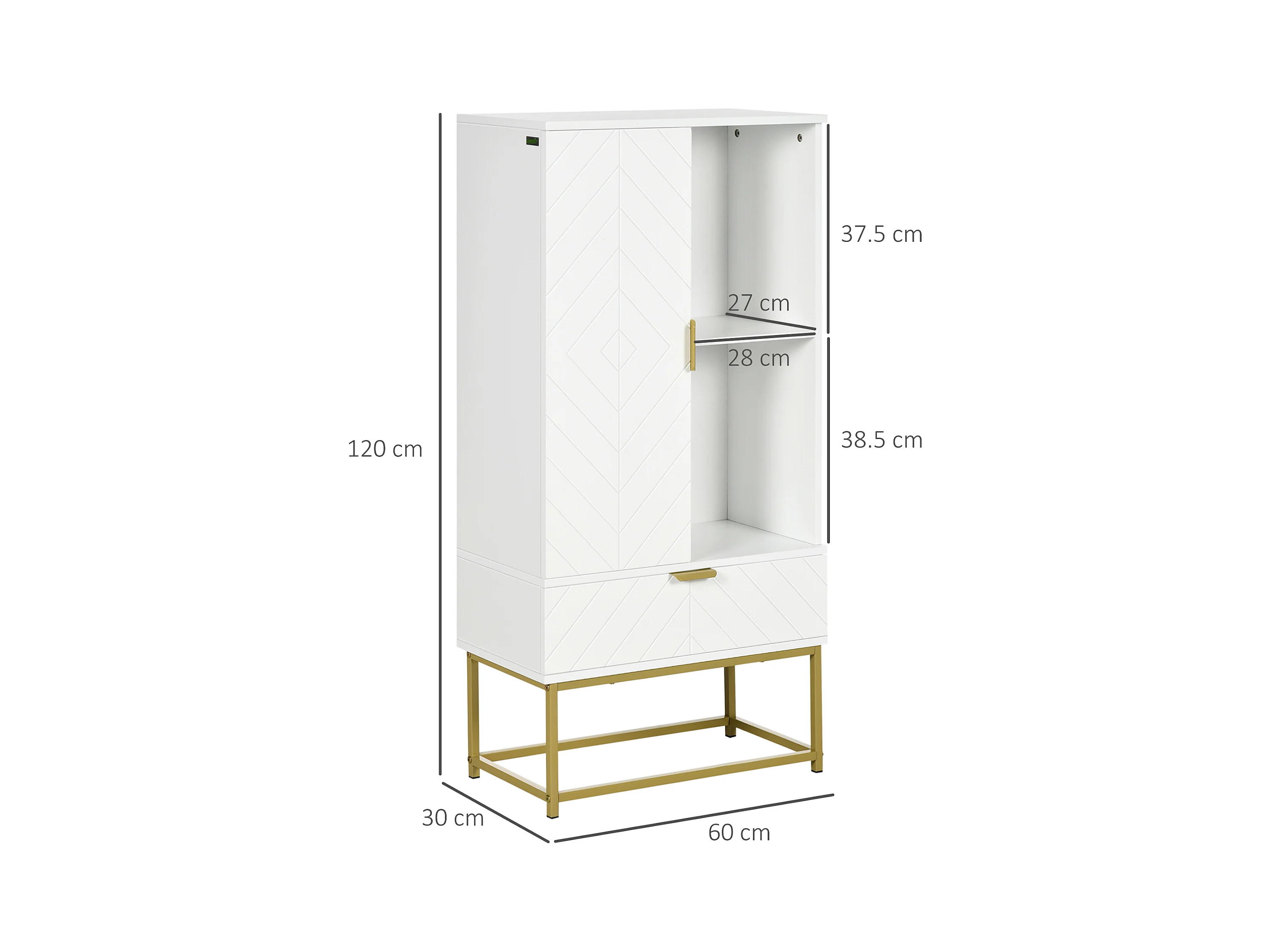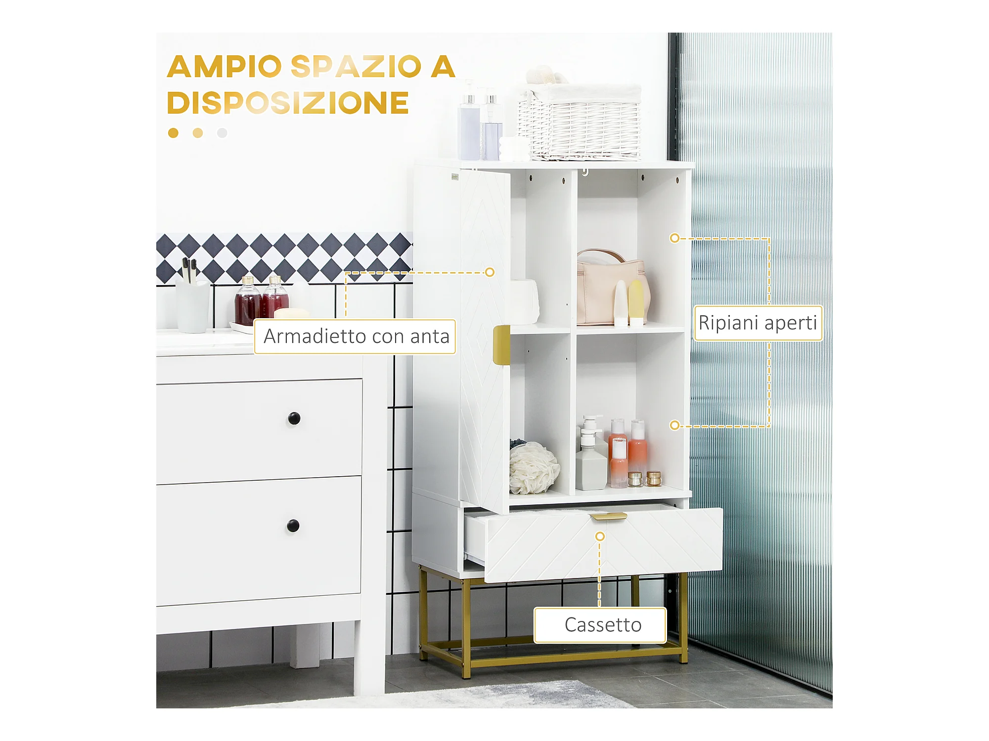 Colonna bagno con 2 armadietti in mdf e acciaio bianco e oro