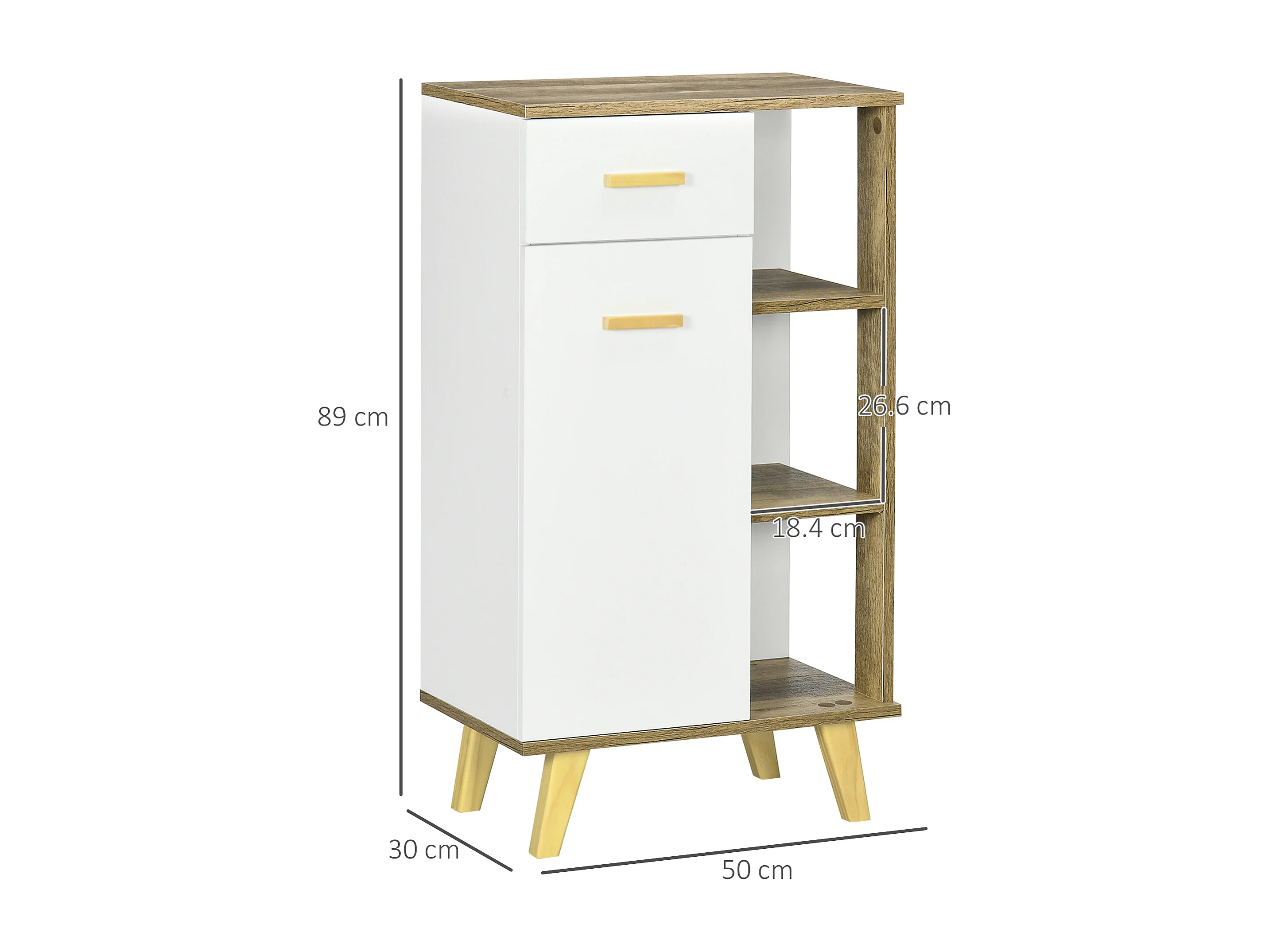 Mobile bagno con 4 cassetti e armadietto a 2 livelli in legno bianco