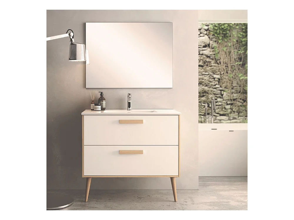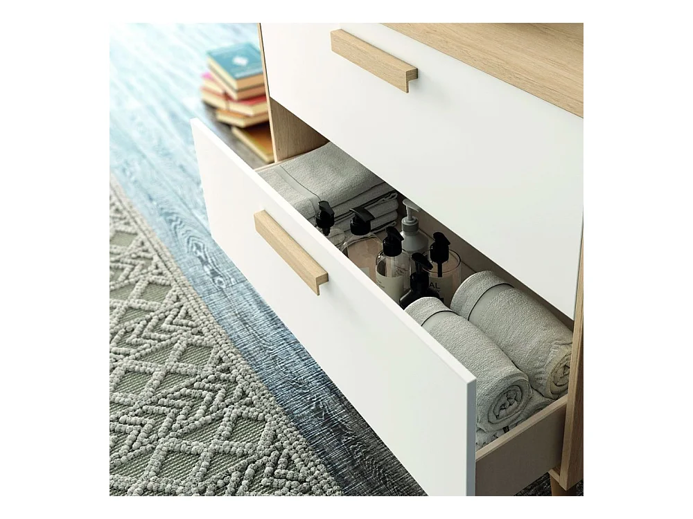 Mobile bagno Nordic: stile scandinavo rovere e bianco e funzionalità 80x45x80H