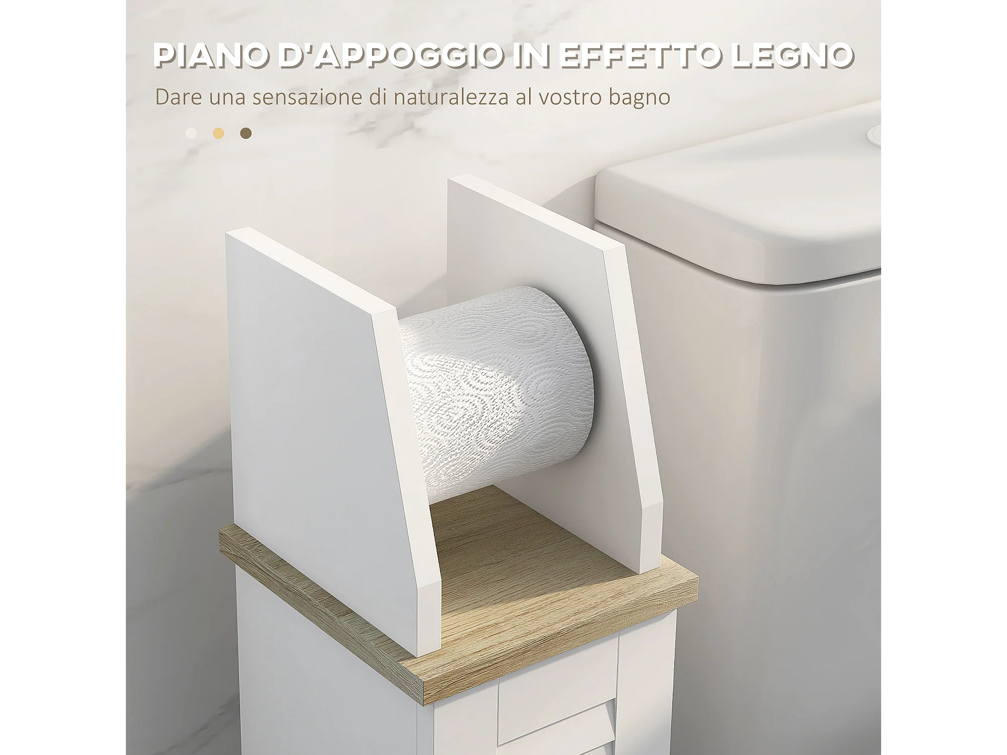 Mobile bagno porta carta igienica con armadietto e ripiano bianco