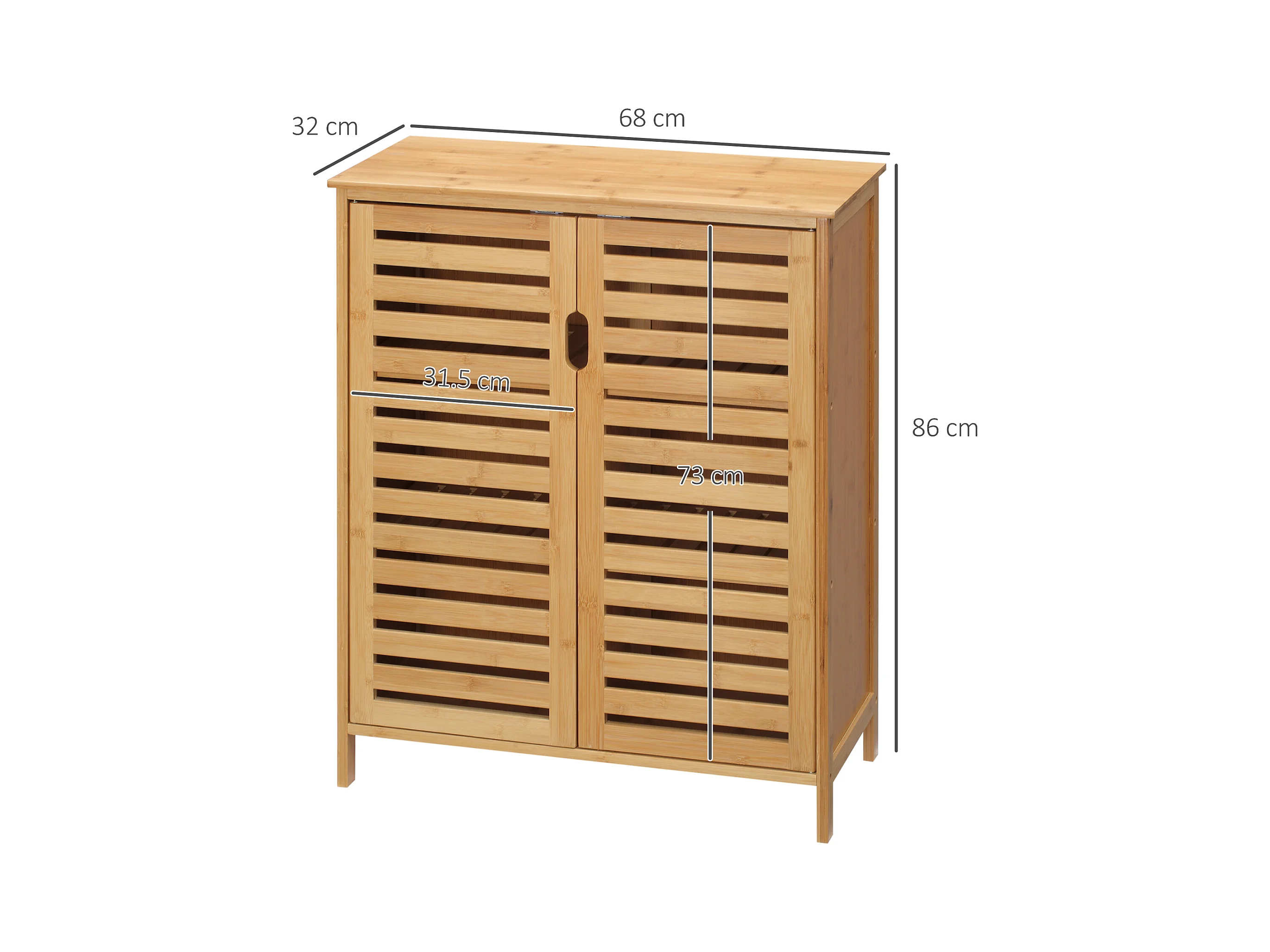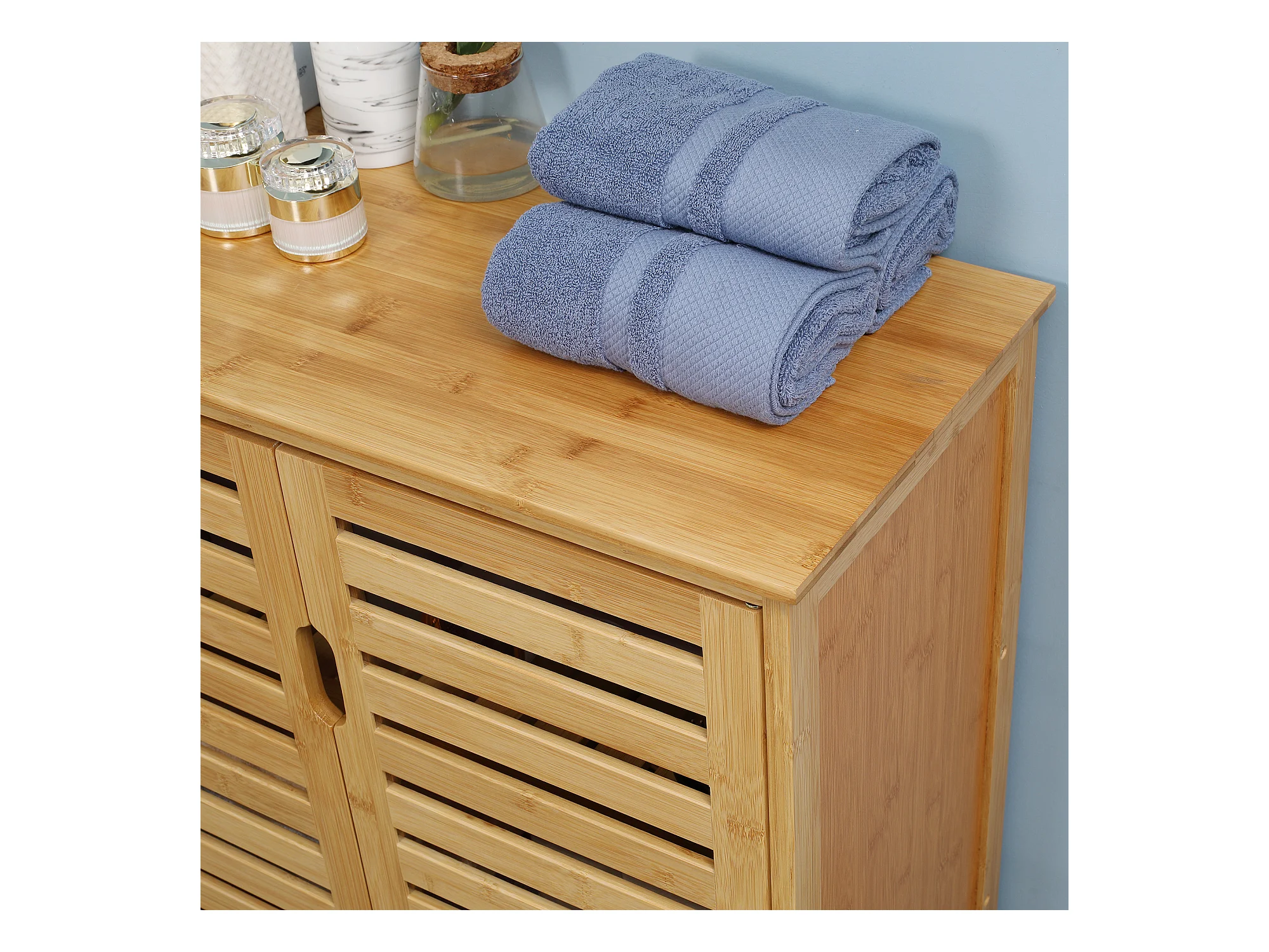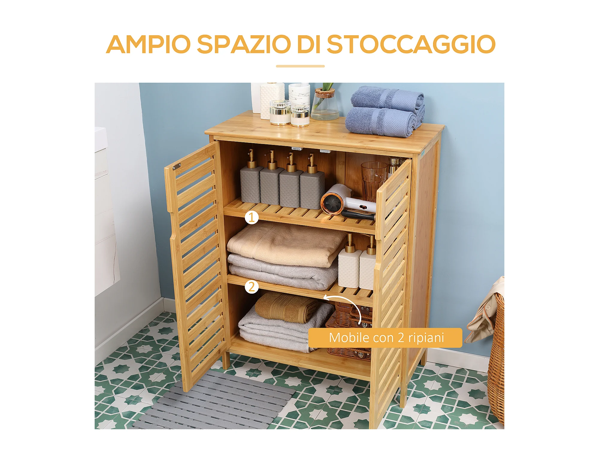 Mobile bagno salvaspazio a 2 ante con 2 ripiani in bambù