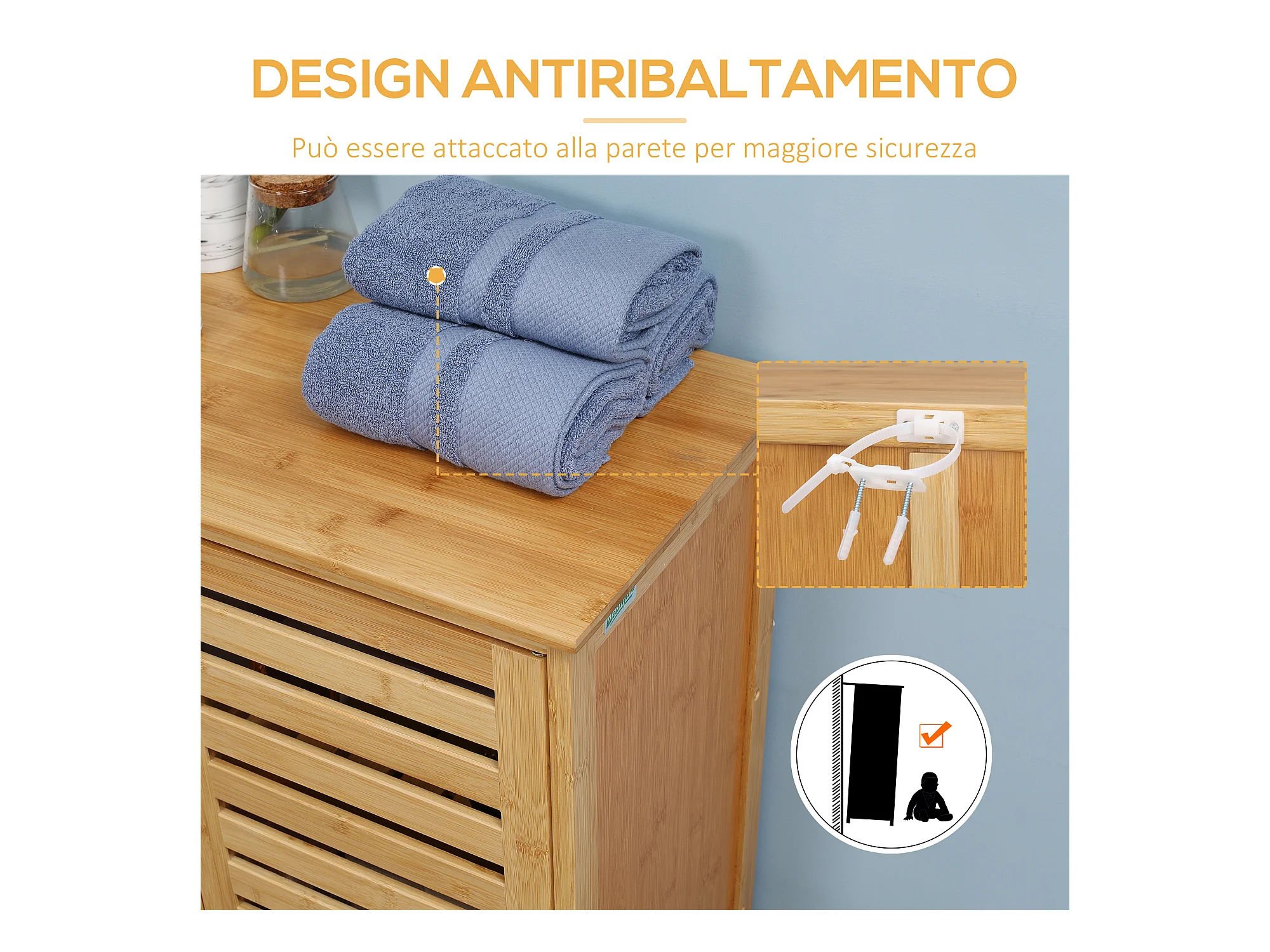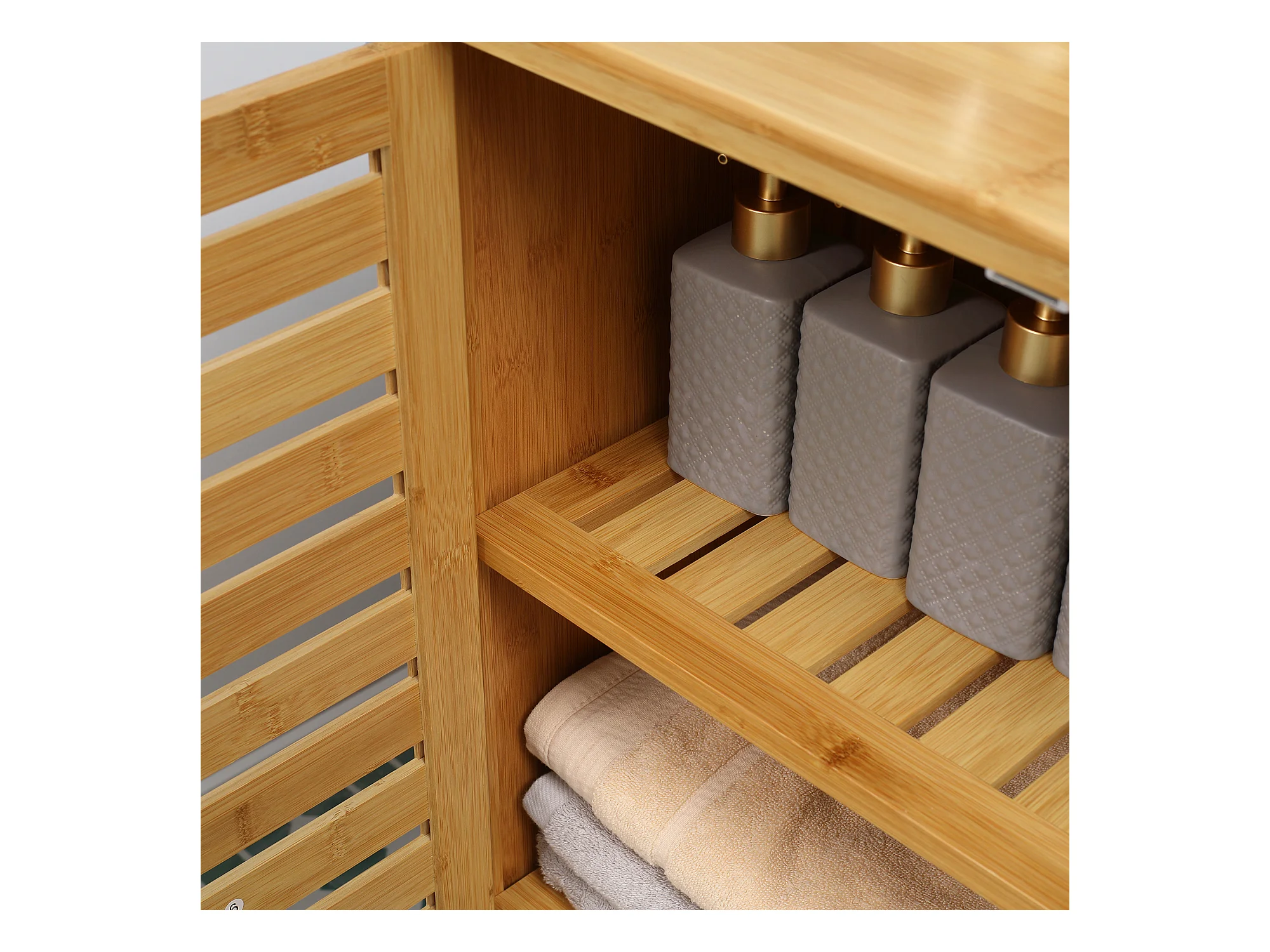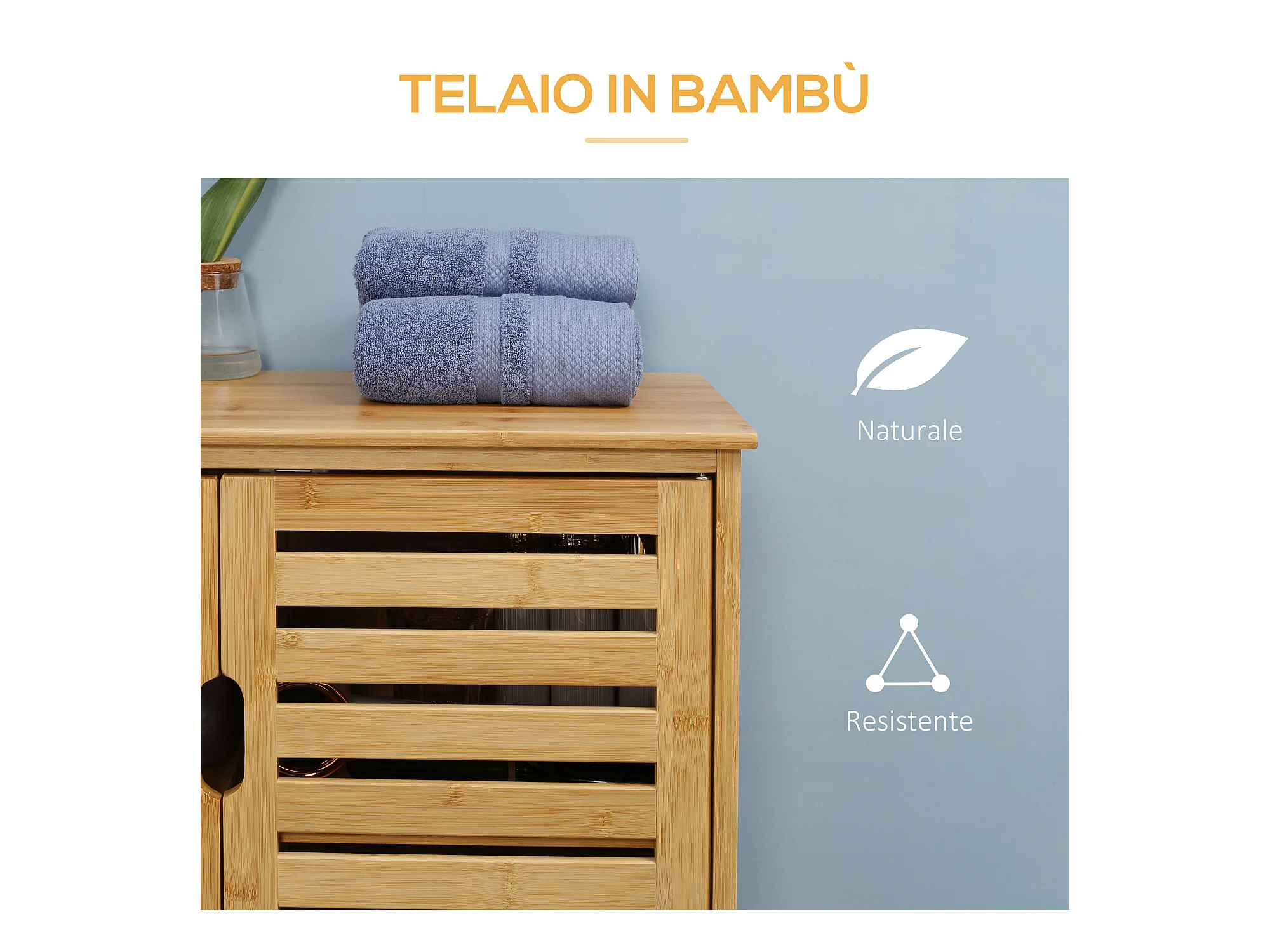 Mobile bagno con armadietto a 2 ante e ripiani in bambù