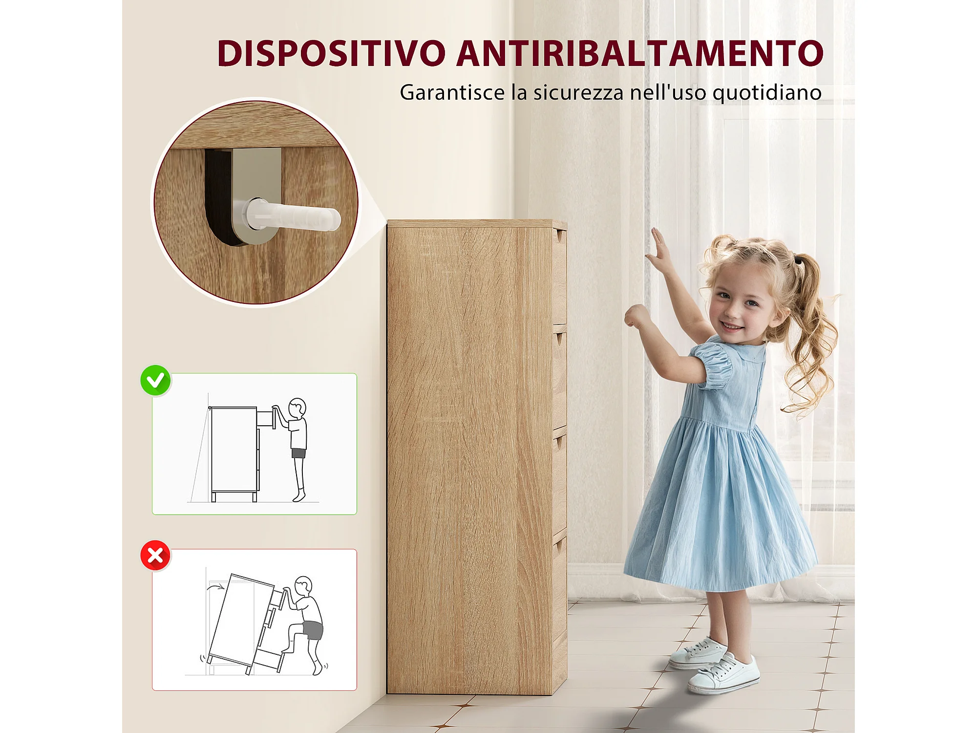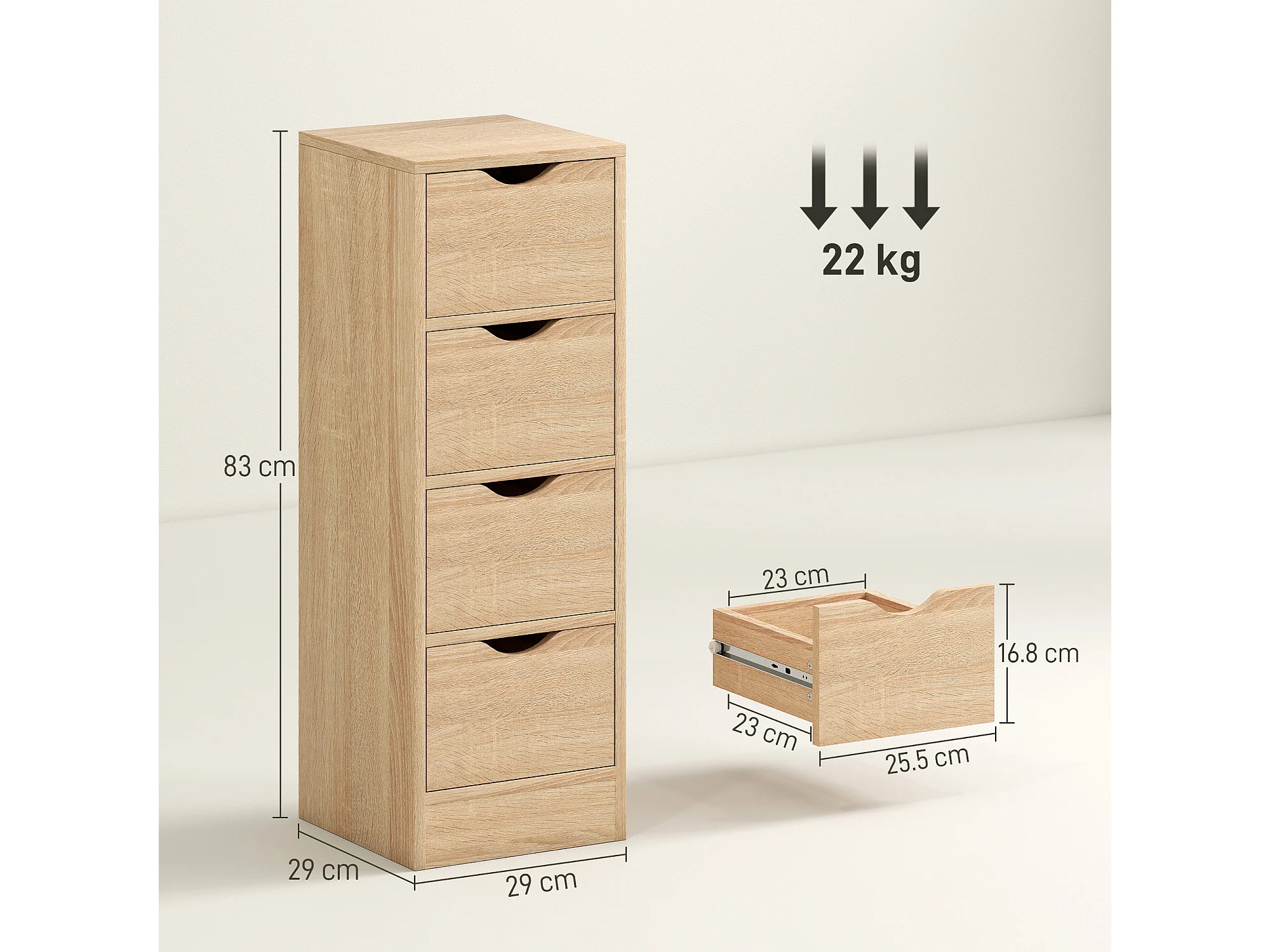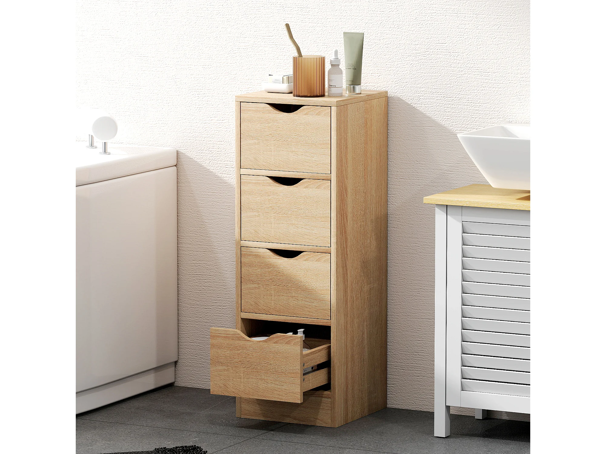 Mobile bagno salvaspazio con 4 cassetti stile nordico colore legno