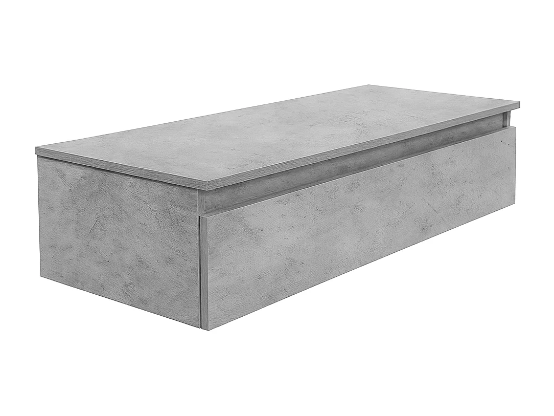 Mobile bagno sfalsato sospeso 100 cm in legno color cemento chiaro con 2 cassettoni, lavabo, specchio e faretto a led I Made in Italy