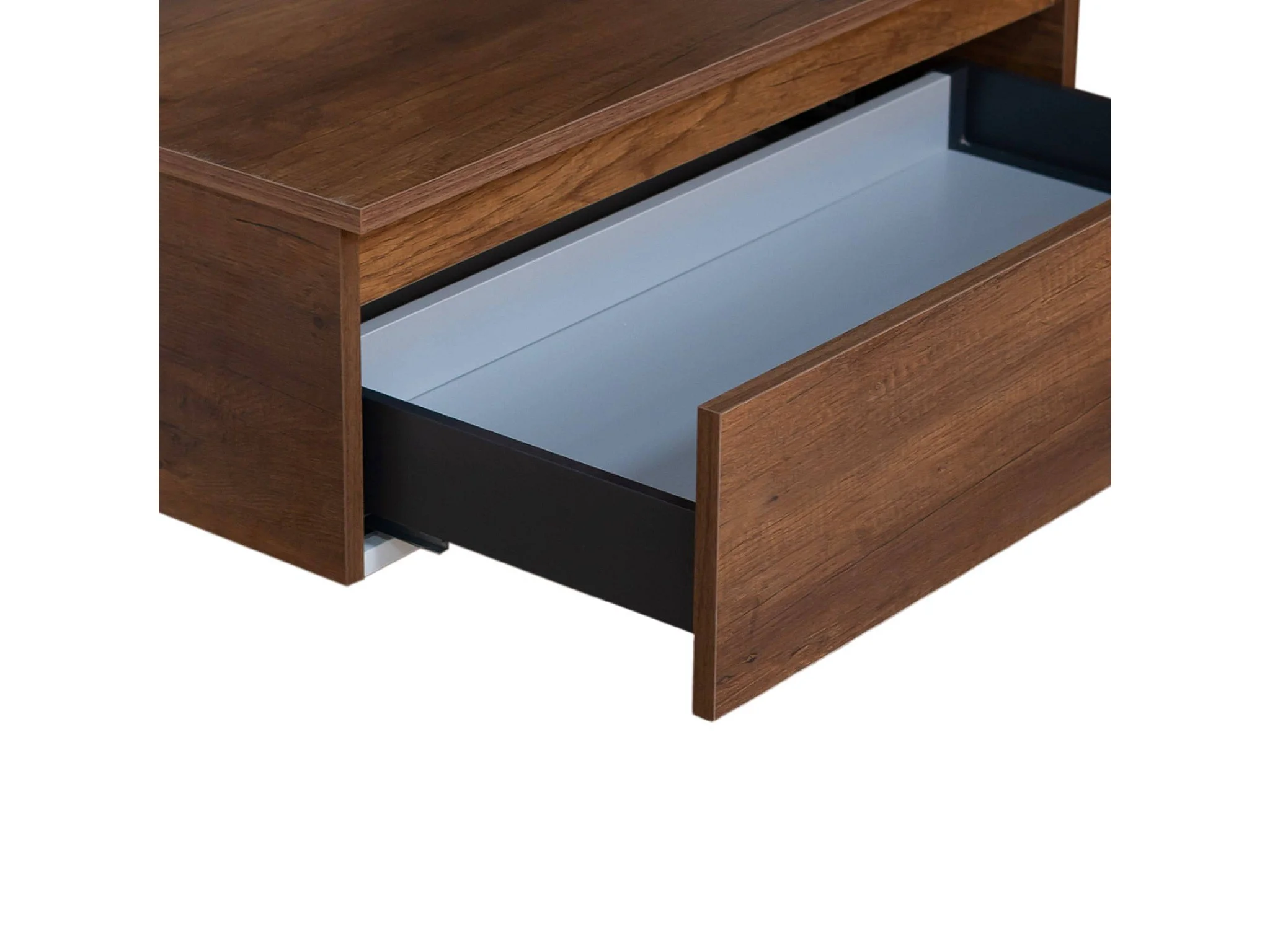 Mobile bagno sfalsato sospeso 100 cm in legno color noce con 2 cassettoni, lavabo, specchio e faretto a led I Made in Italy