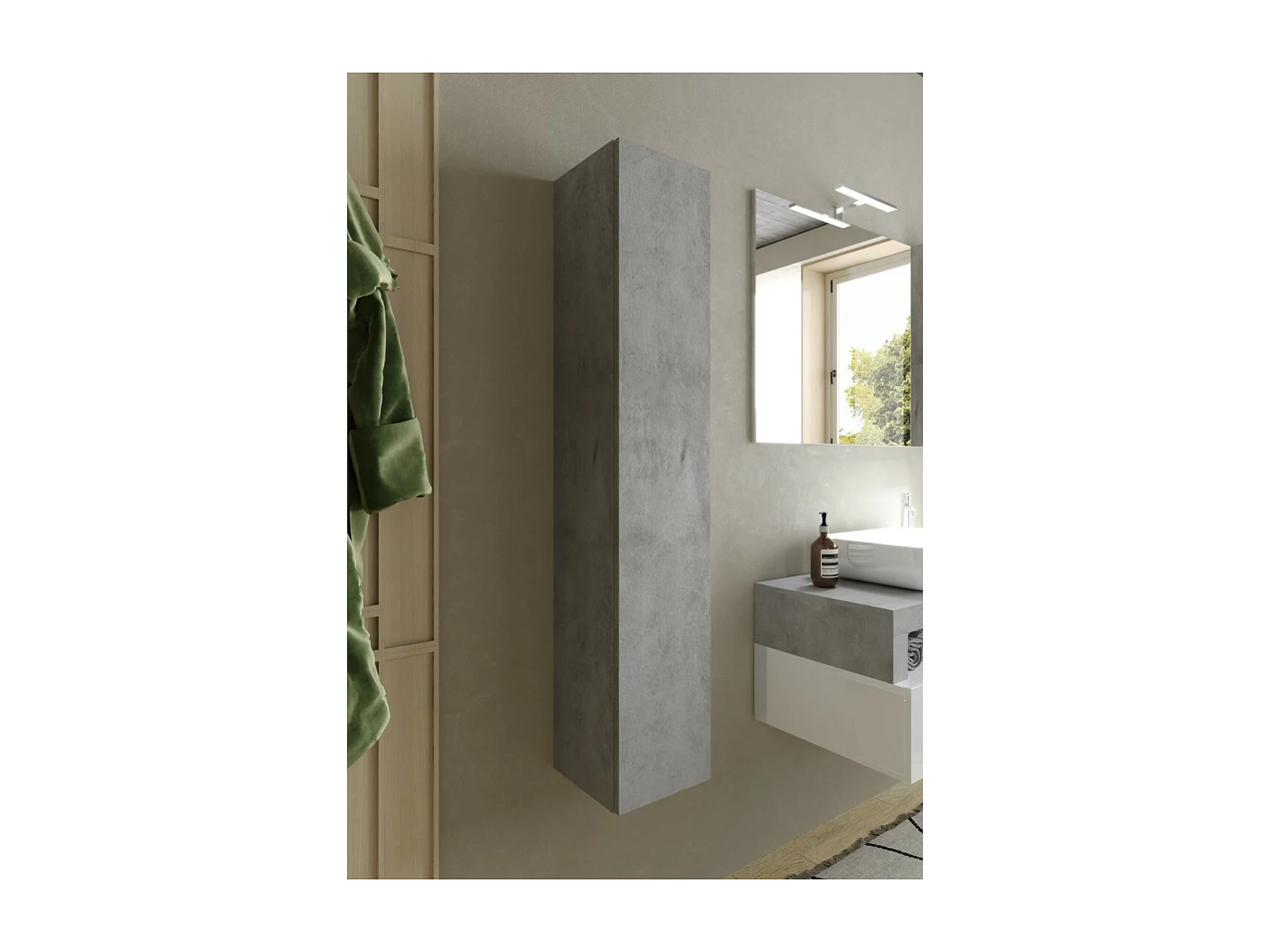 Mobile bagno sospeso, 1 porta, collezione BURA. Colore cemento.