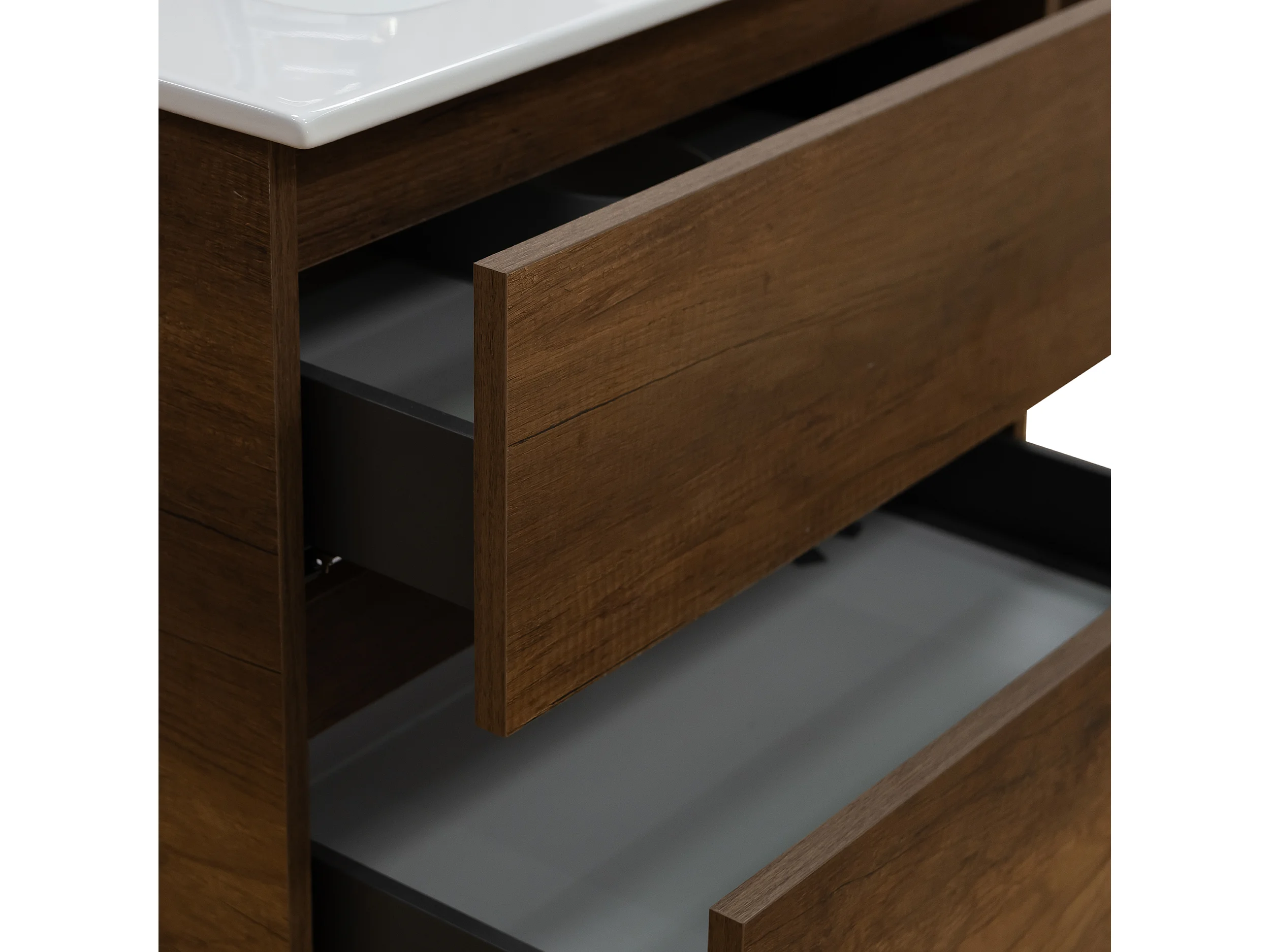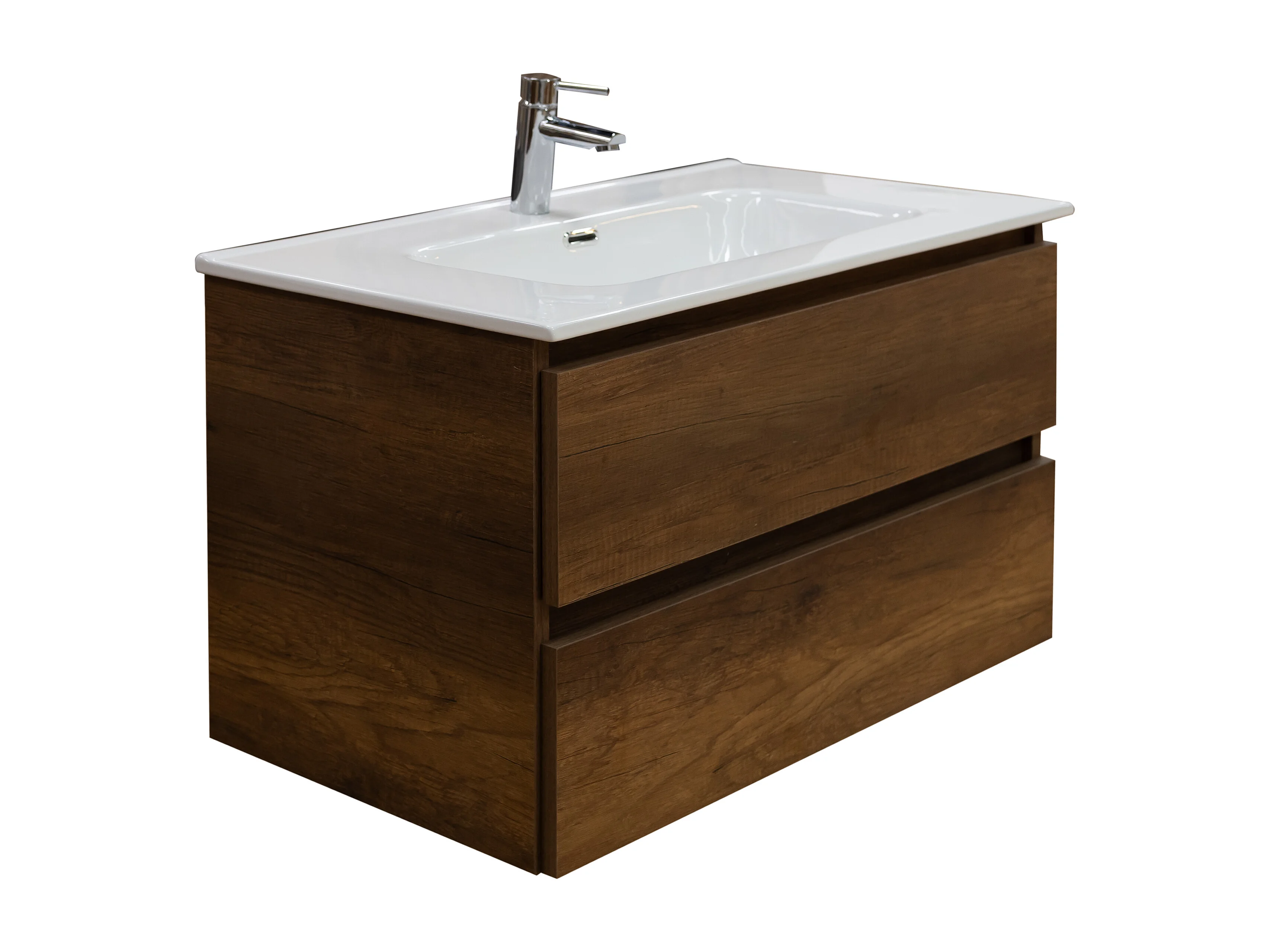 Mobile bagno sospeso 120 cm in legno color noce con lavabo, specchio e faretto a led I Made in Italy