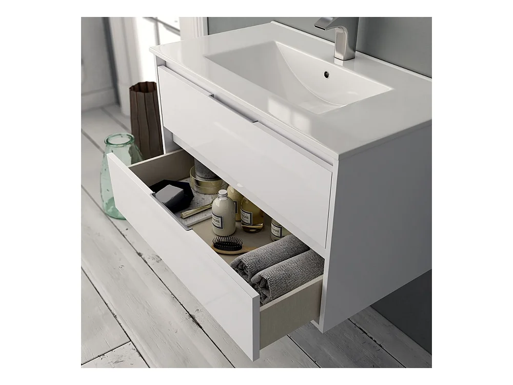 Mobile bagno sospeso Bolton colore bianco laccato lucido 80x45x48H 2 cassetti: design moderno e funzionalità