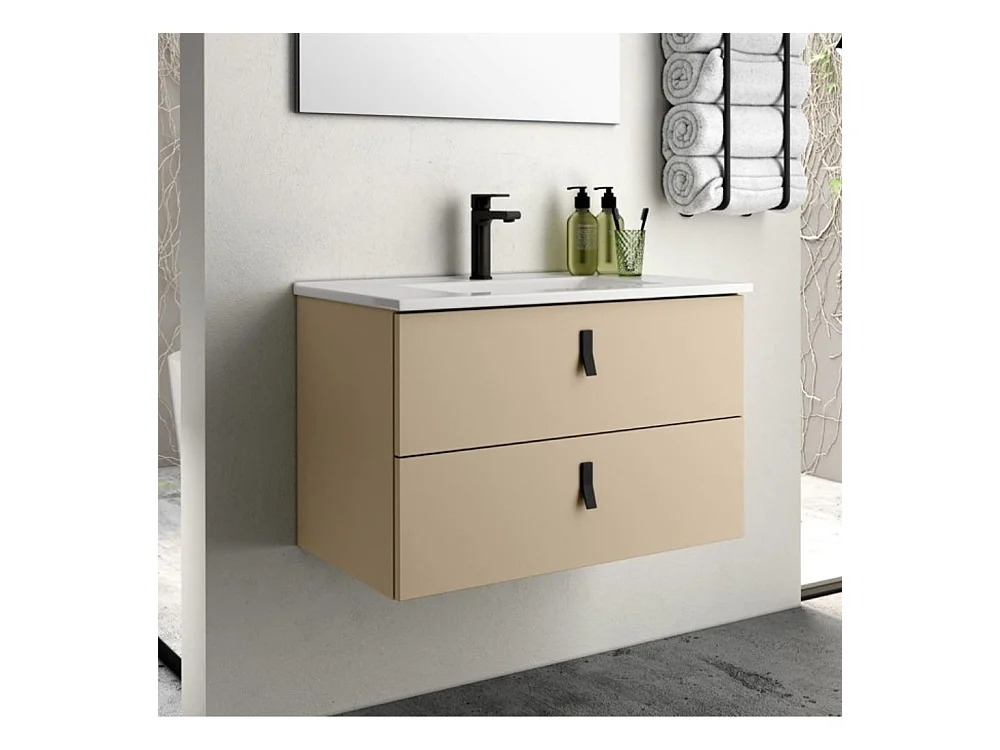 Mobile bagno sospeso colore cappuccino 2 cassetti Invicta 80x45x48H