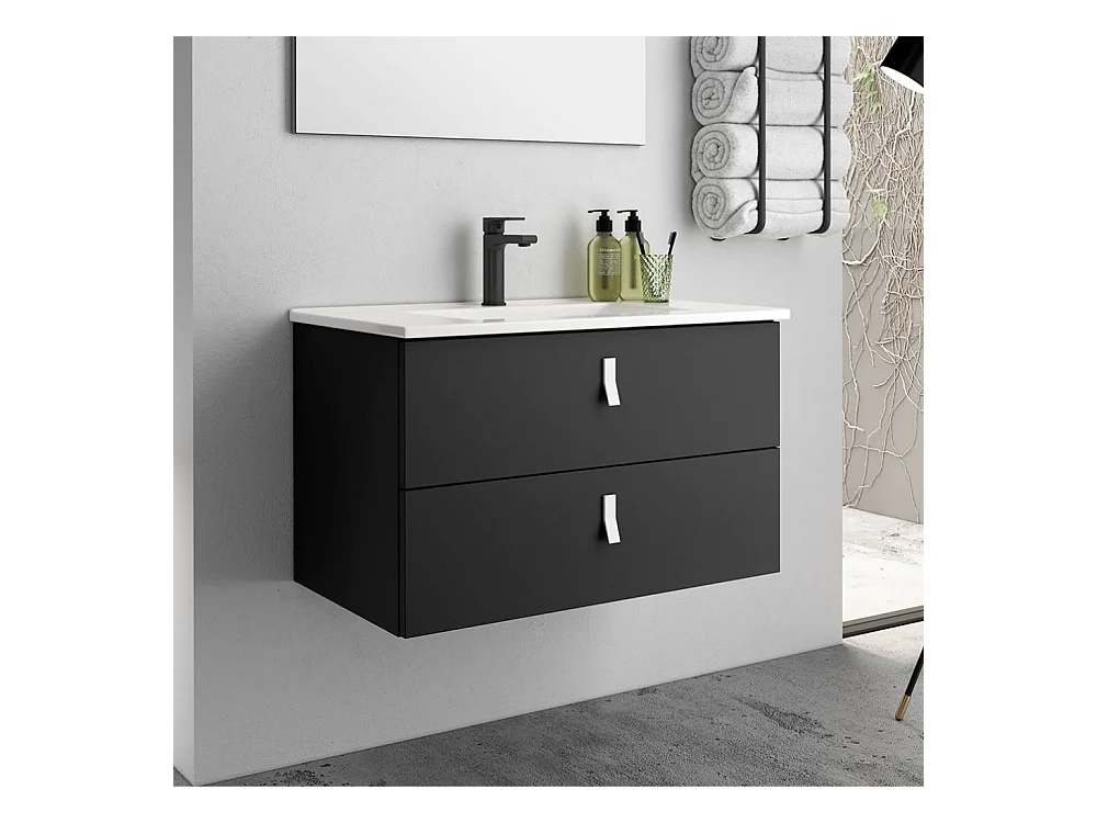 Mobile bagno sospeso colore nero 2 cassetti Invicta 80x45x48H