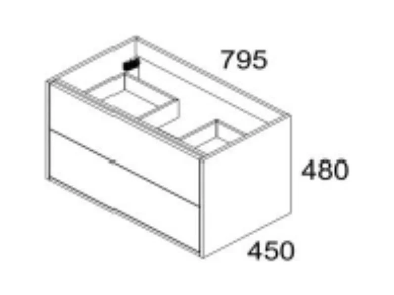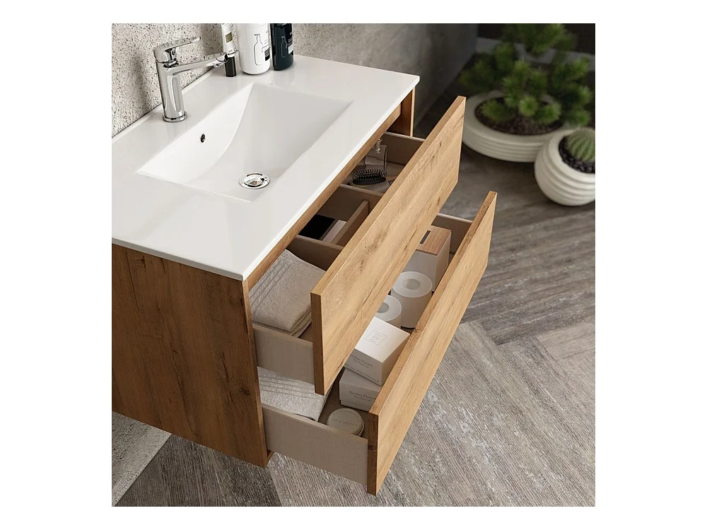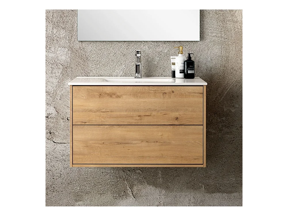 Mobile bagno sospeso olmo 2 cassetti con lavabo e specchio COMP80OL 81x46x54h