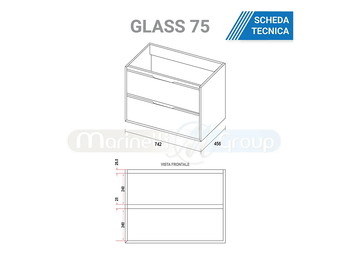 DESCRIZIONESe stai cercando di aggiornare il tuo bagno con mobili moderni e pratici, il mobile bagno sospeso Glass è la giusta scelta! Questo mobile bagno da 75 cm è realizzato in MDF e rivestito con foglia di PVC. La base del mobile sono presenti due cassetti a chiusura rallentata, perfetti per ottimizzare lo spazio e sistemare con ordine asciugamani, flaconi e accessori. Garantite fino a 60.000 chiusure.