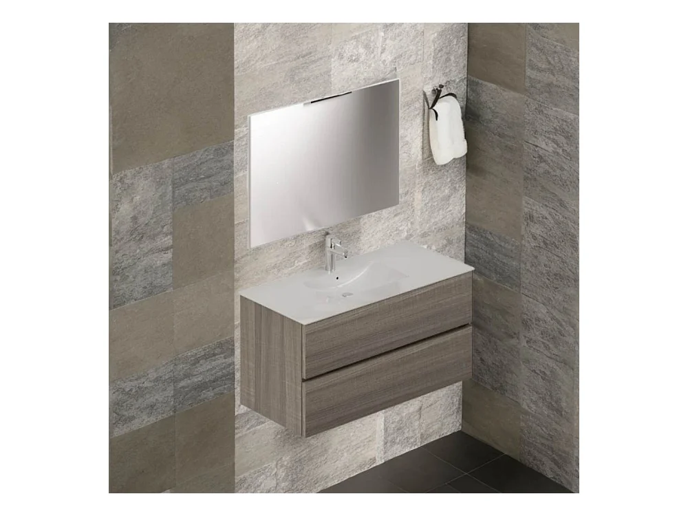 Mobile bagno sospeso olmo 2 cassetti con lavabo e specchio COMP100OL 101x46x54h
