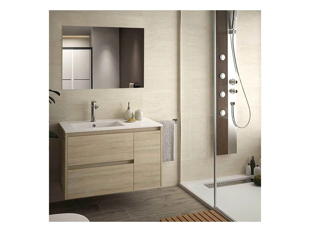 Mobile bagno sospeso olmo 2 cassetti con lavabo e specchio COMP100OL 101x46x54h