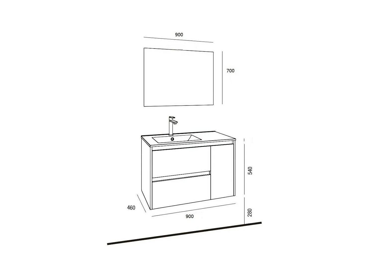 Mobile bagno sospeso olmo 2 cassetti con lavabo e specchio COMP80OL 81x46x54h