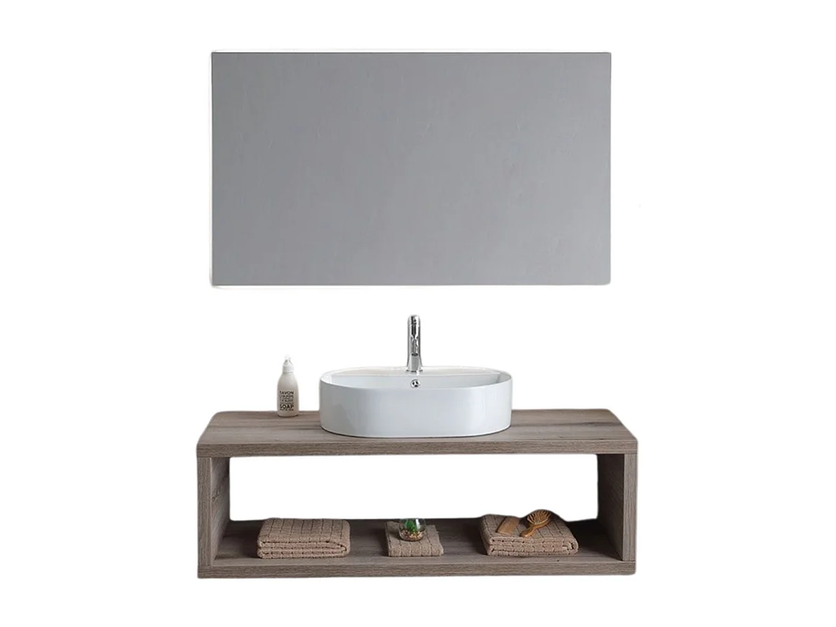 Mobile bagno sospeso rovere fossile "Samoa" 120 cm con lavabo ovale e specchio rettangolare LED