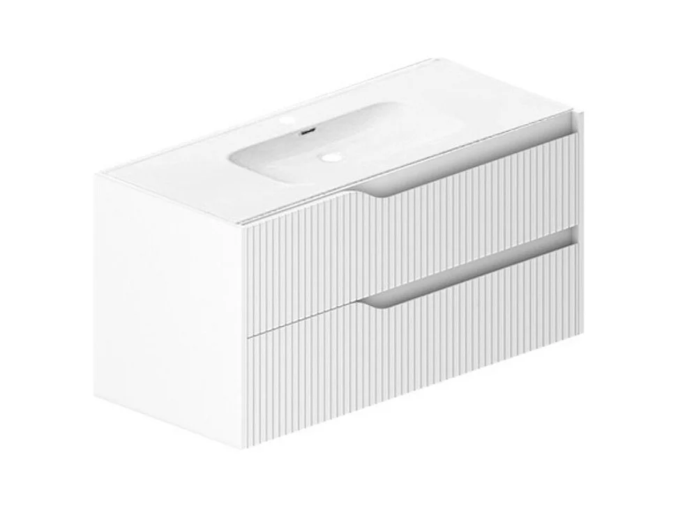 Mobile bagno sospeso Soho colore bianco opaco con cassetti effetto cannettato 100x45x50H