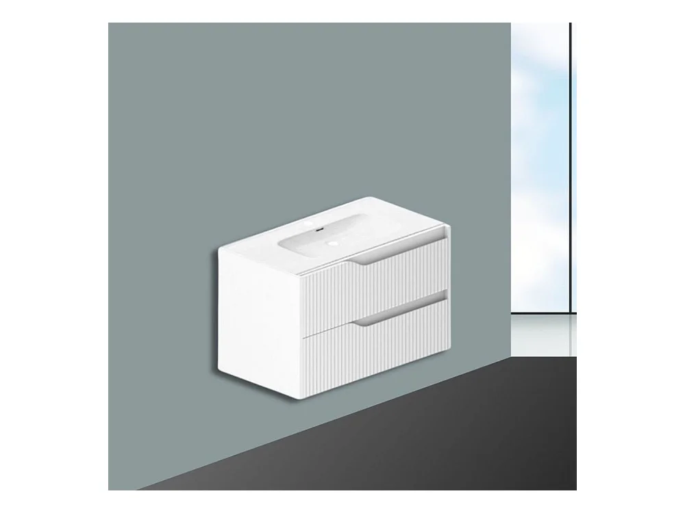 Mobile bagno sospeso Soho colore bianco opaco con cassetti effetto cannettato 80x45x50H