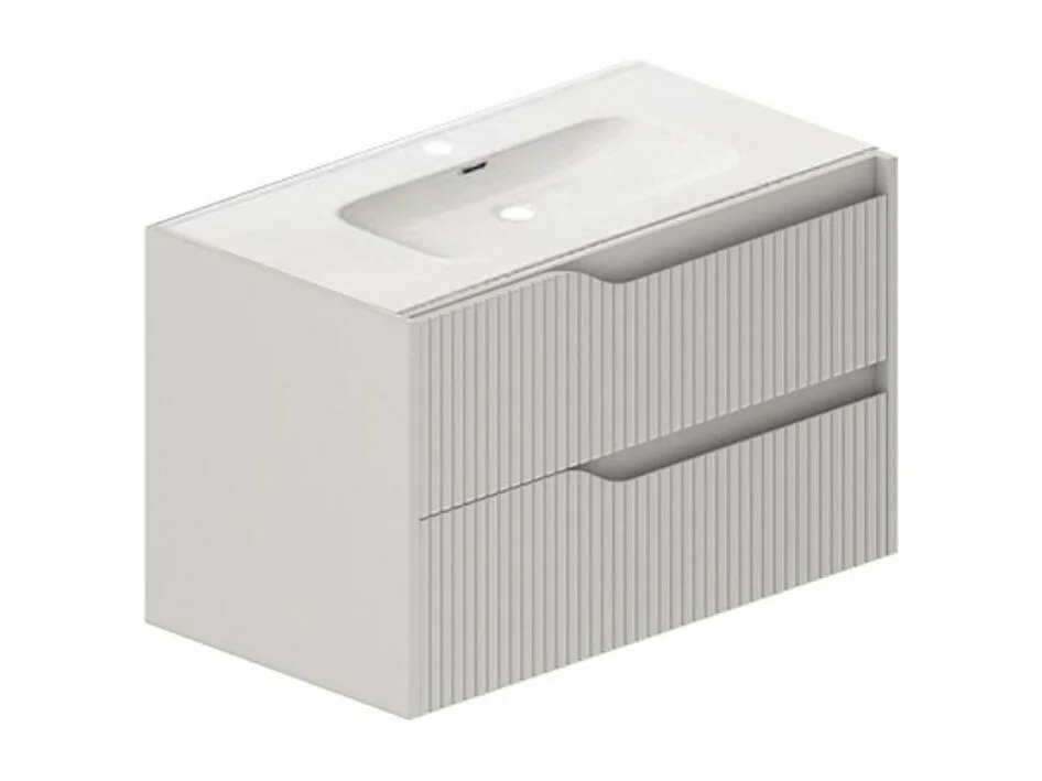 Mobile bagno sospeso Soho colore cashmere opaco con cassetti effetto cannettato 80x45x50H