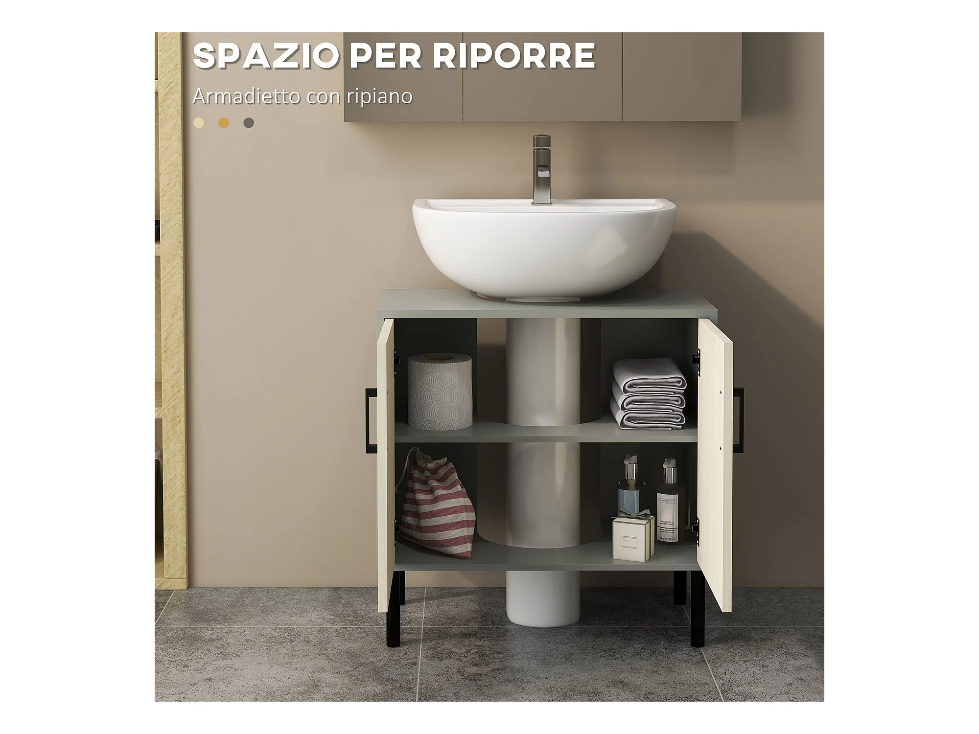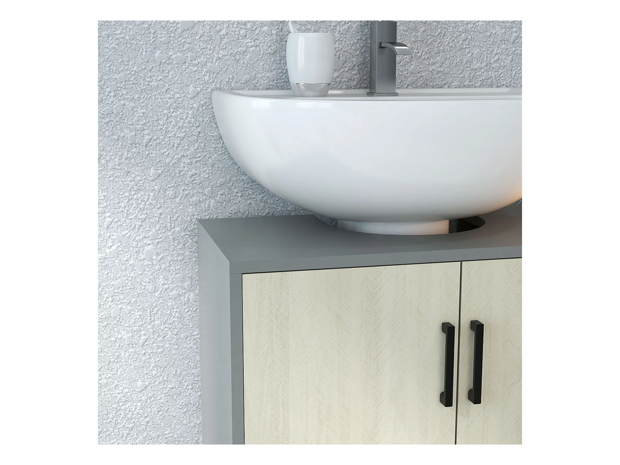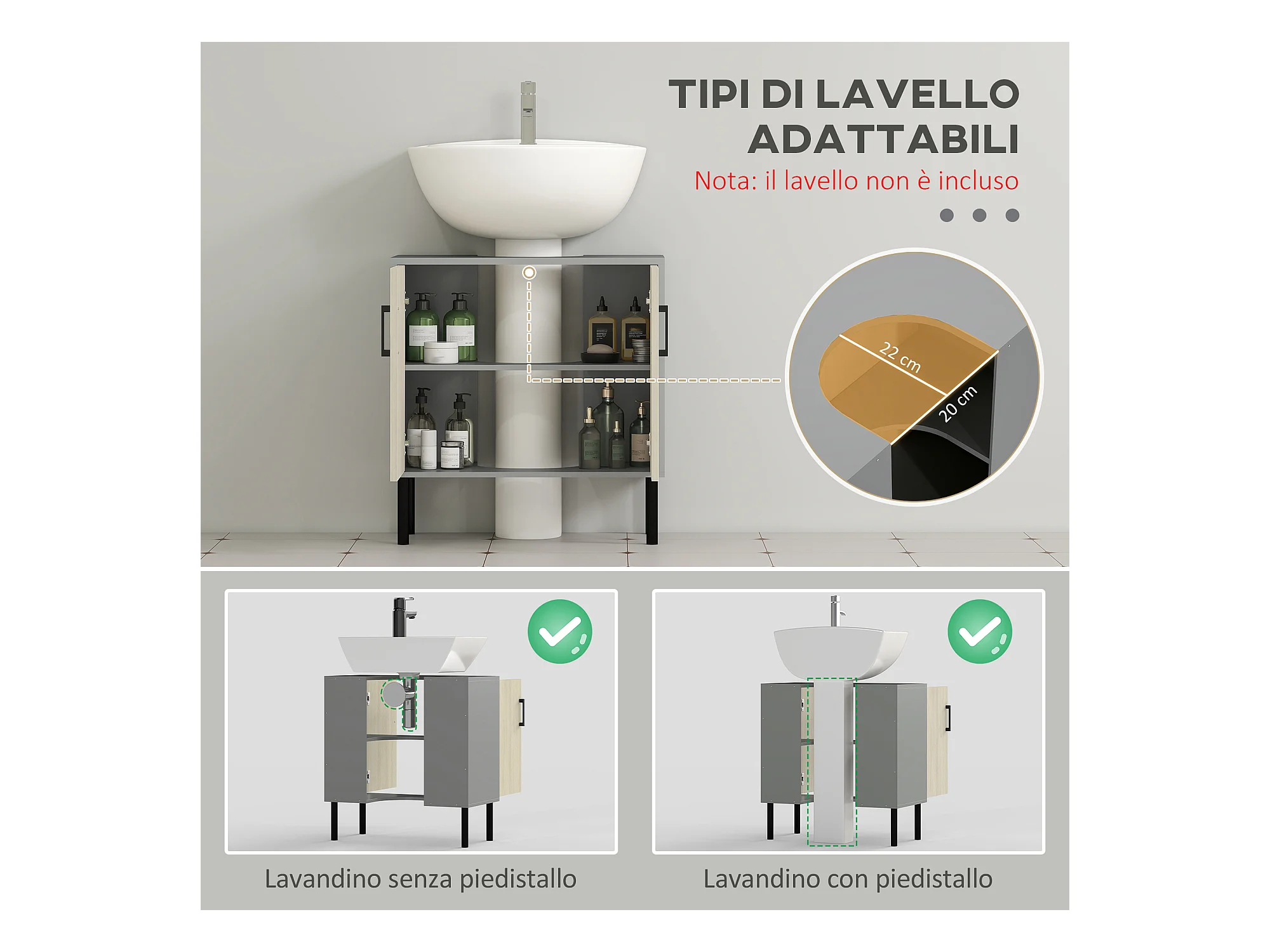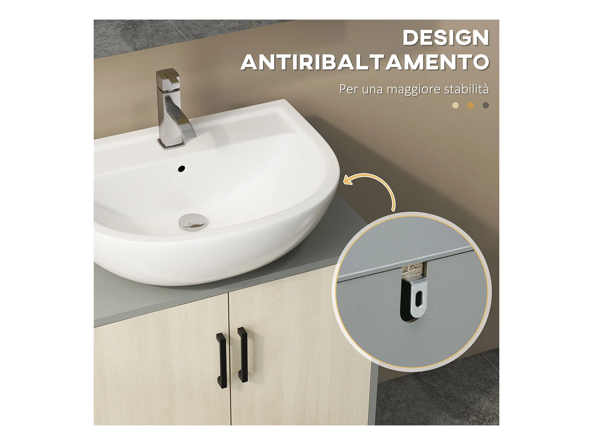 Mobile bagno sottolavabo sospeso con 2 ante e 2 ripiani in legno