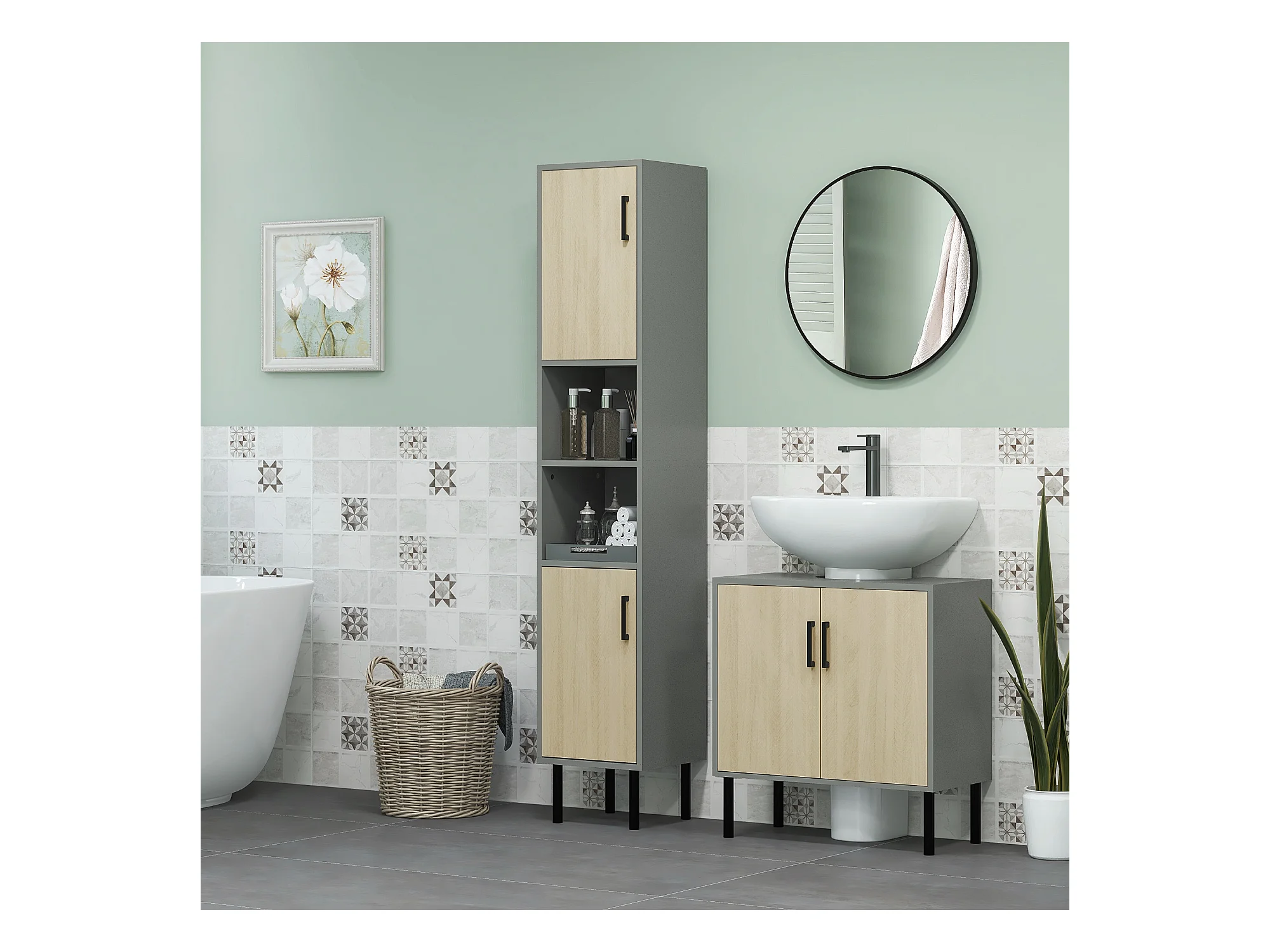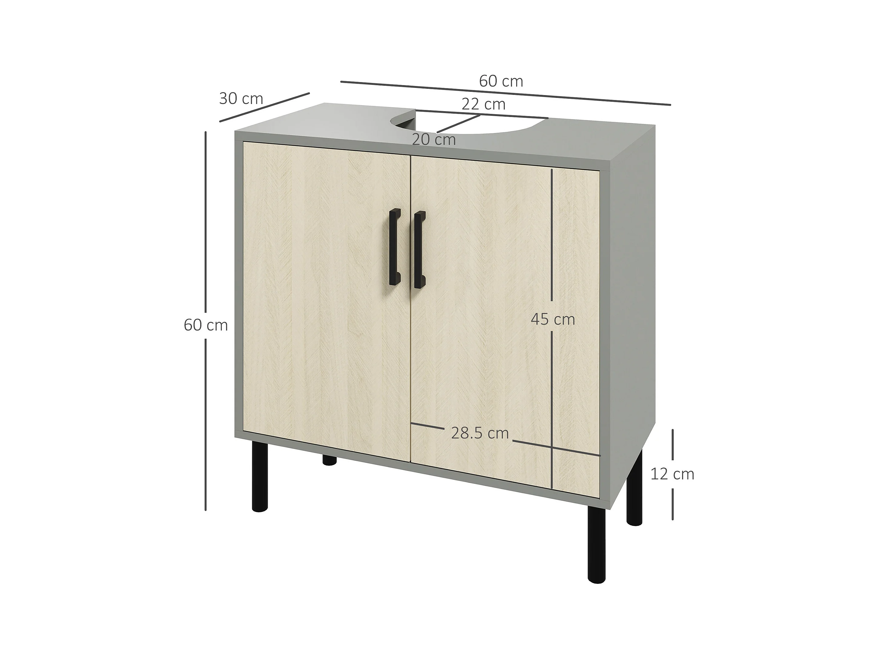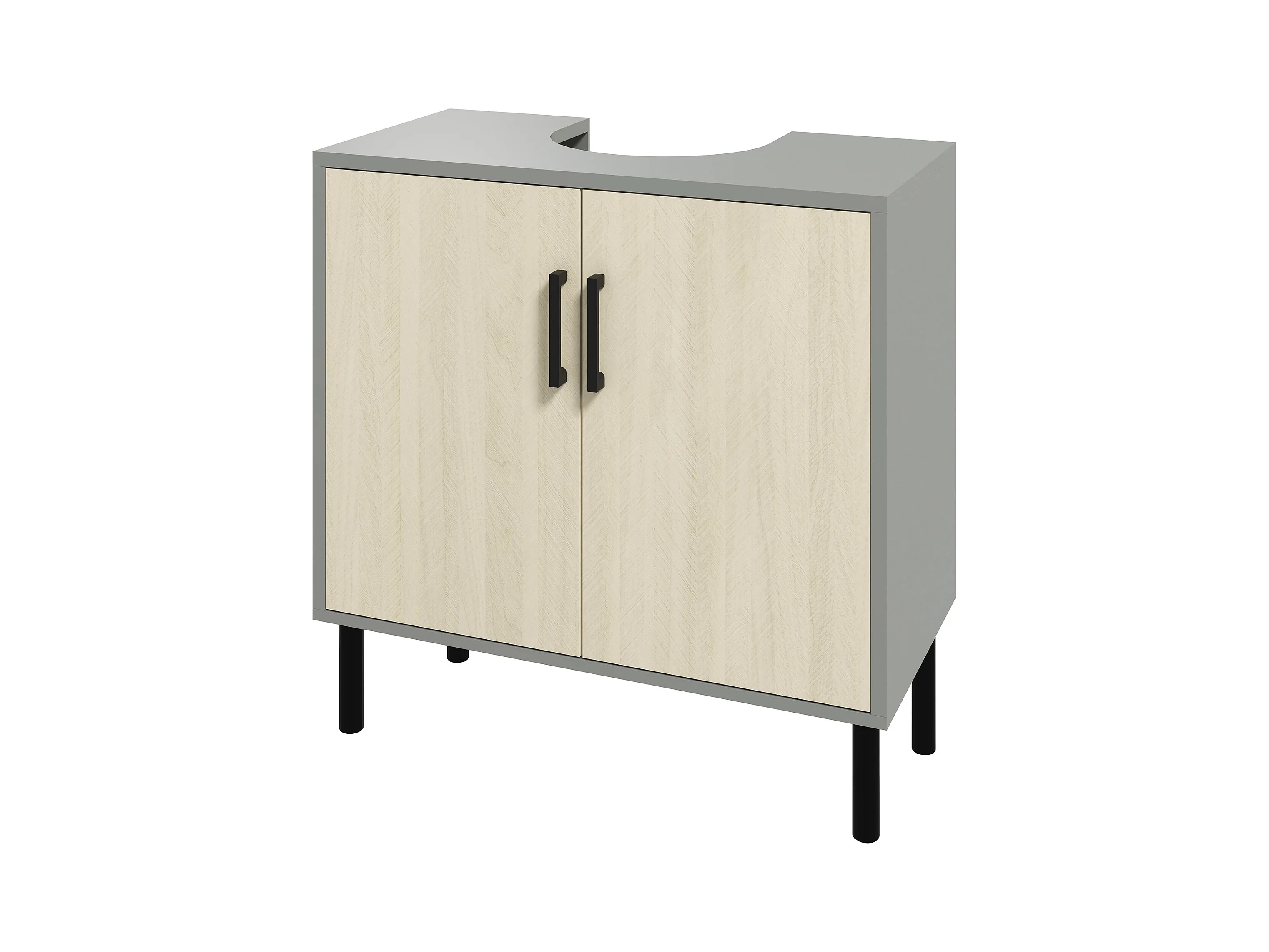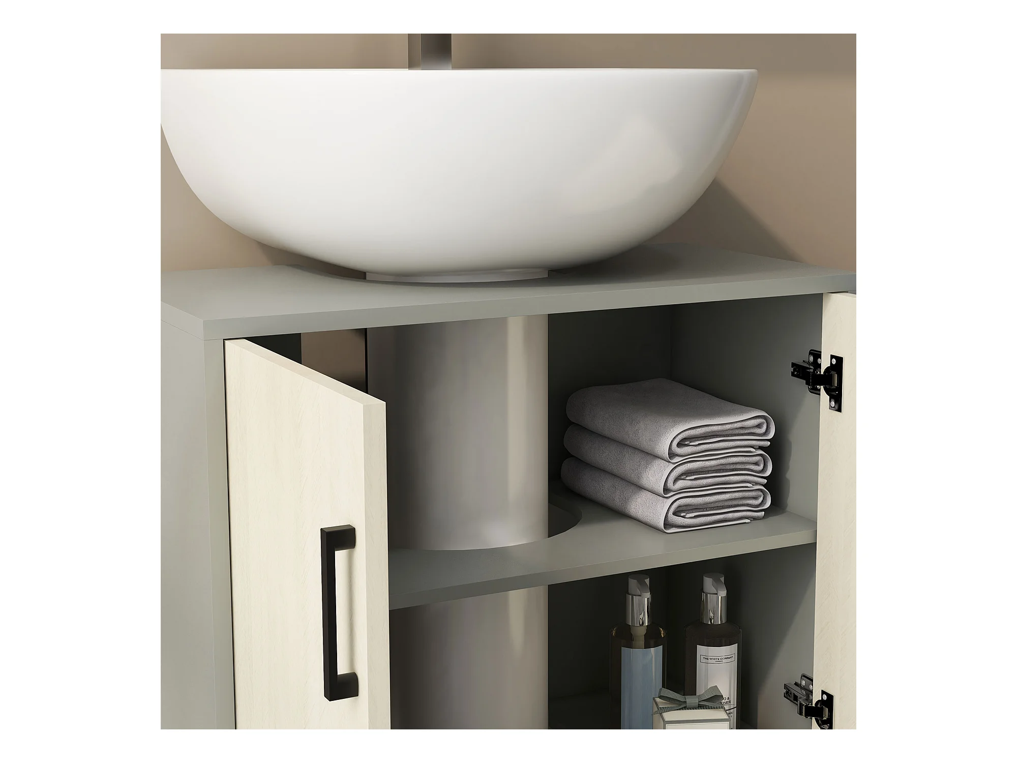Mobile bagno sottolavabo sospeso con 2 ante e 2 ripiani in legno