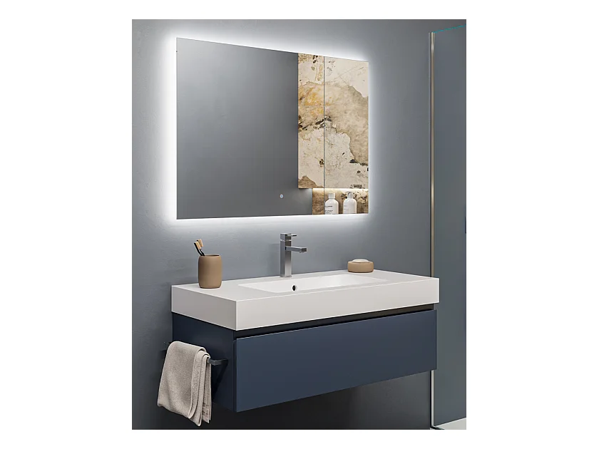 Mobile bagno sottolavabo con lavabo ad incasso L 100 x H 28 x P 46 specchio illuminato e porta asciugamano blu oceano