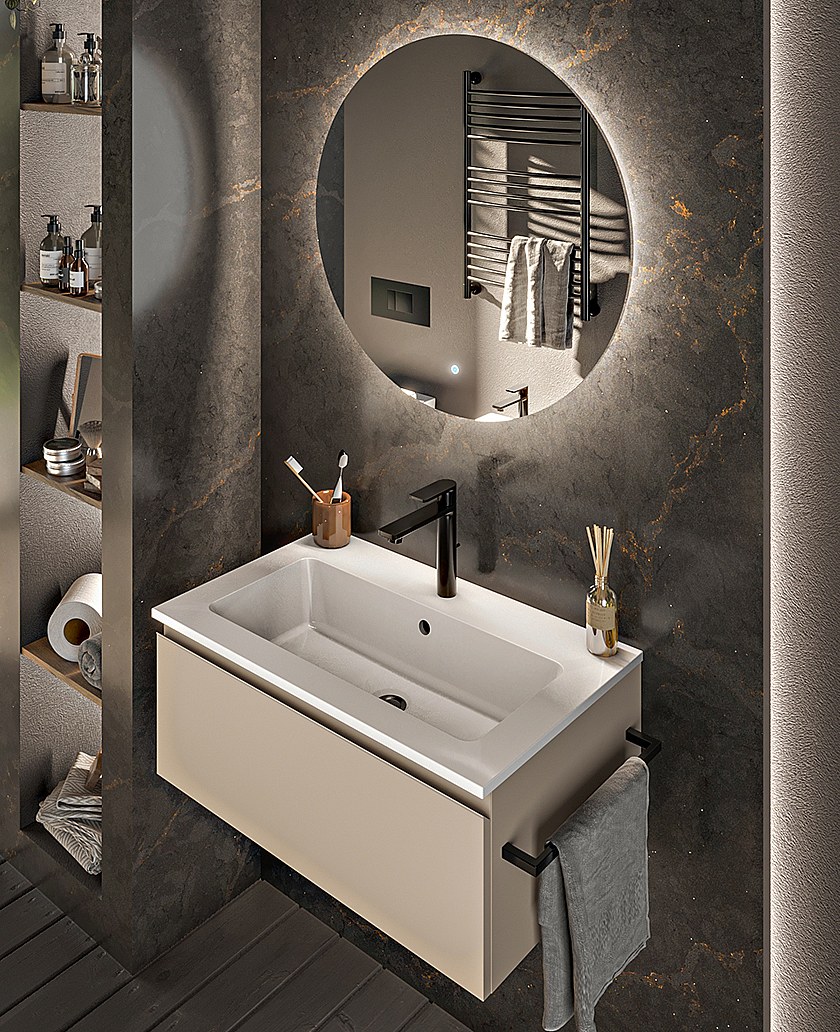 Mobile bagno sottolavabo con lavabo ad incasso L 70 x H 28 x P 46 specchio illuminato e porta asciugamano tortora milano