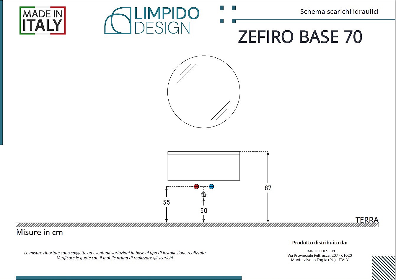 Mobile bagno Top L 70 x P 46 con lavabo in appoggio poro noce cassettiera tortora milano specchio