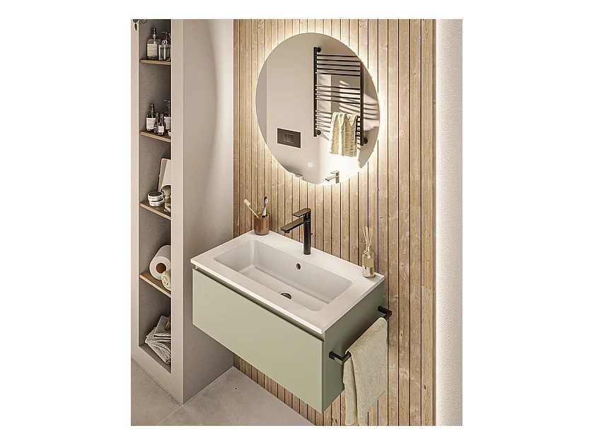 Mobile bagno sottolavabo con lavabo ad incasso L 70 x H 28 x P 46 specchio illuminato e porta asciugamano verde salvia