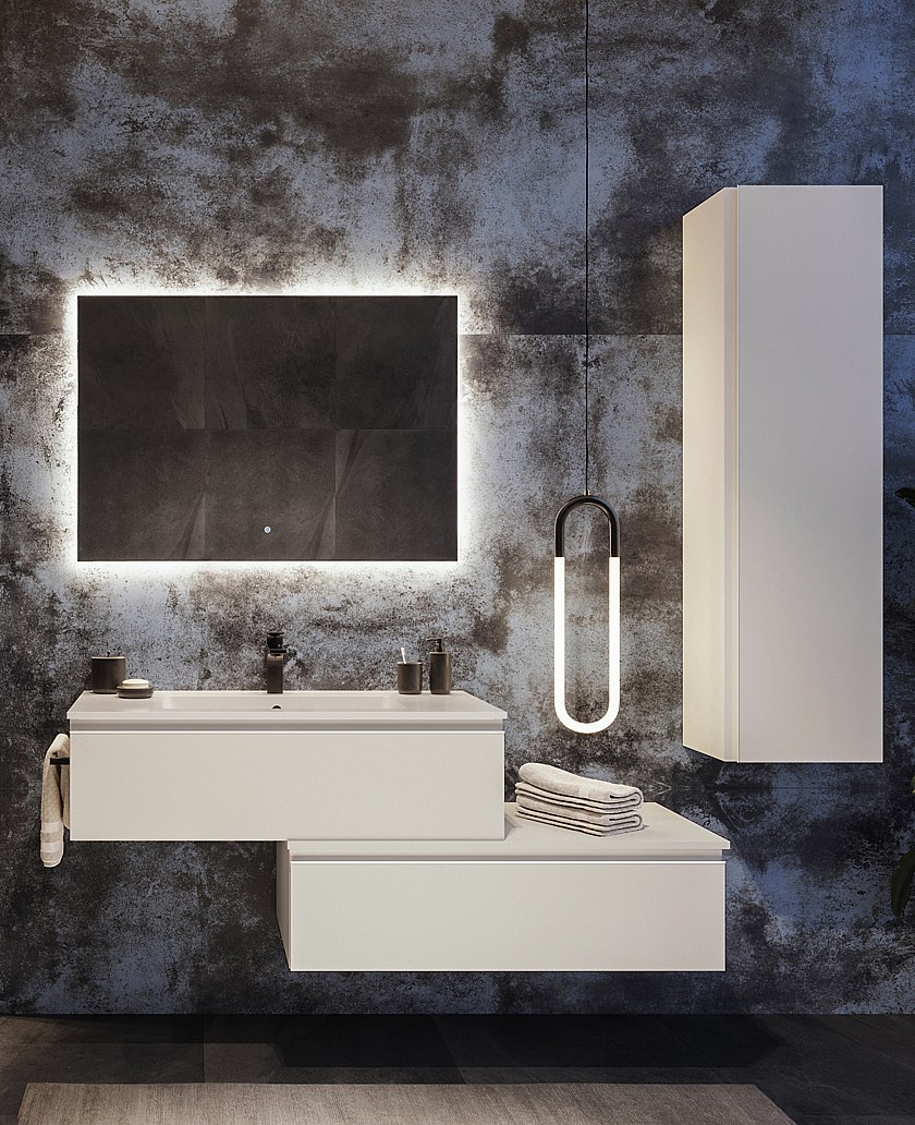 Mobile bagno sottolavabo con lavabo cassettiera e colonna bianco luce specchio e p. asciugamano L 100 x H 28 x P 46
