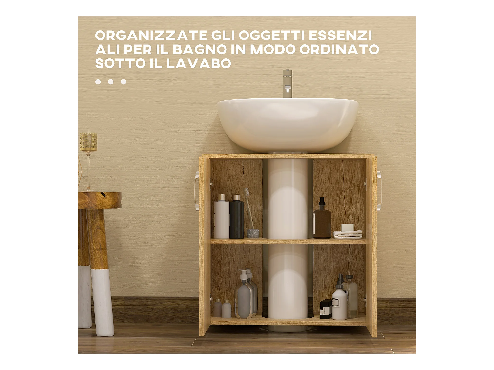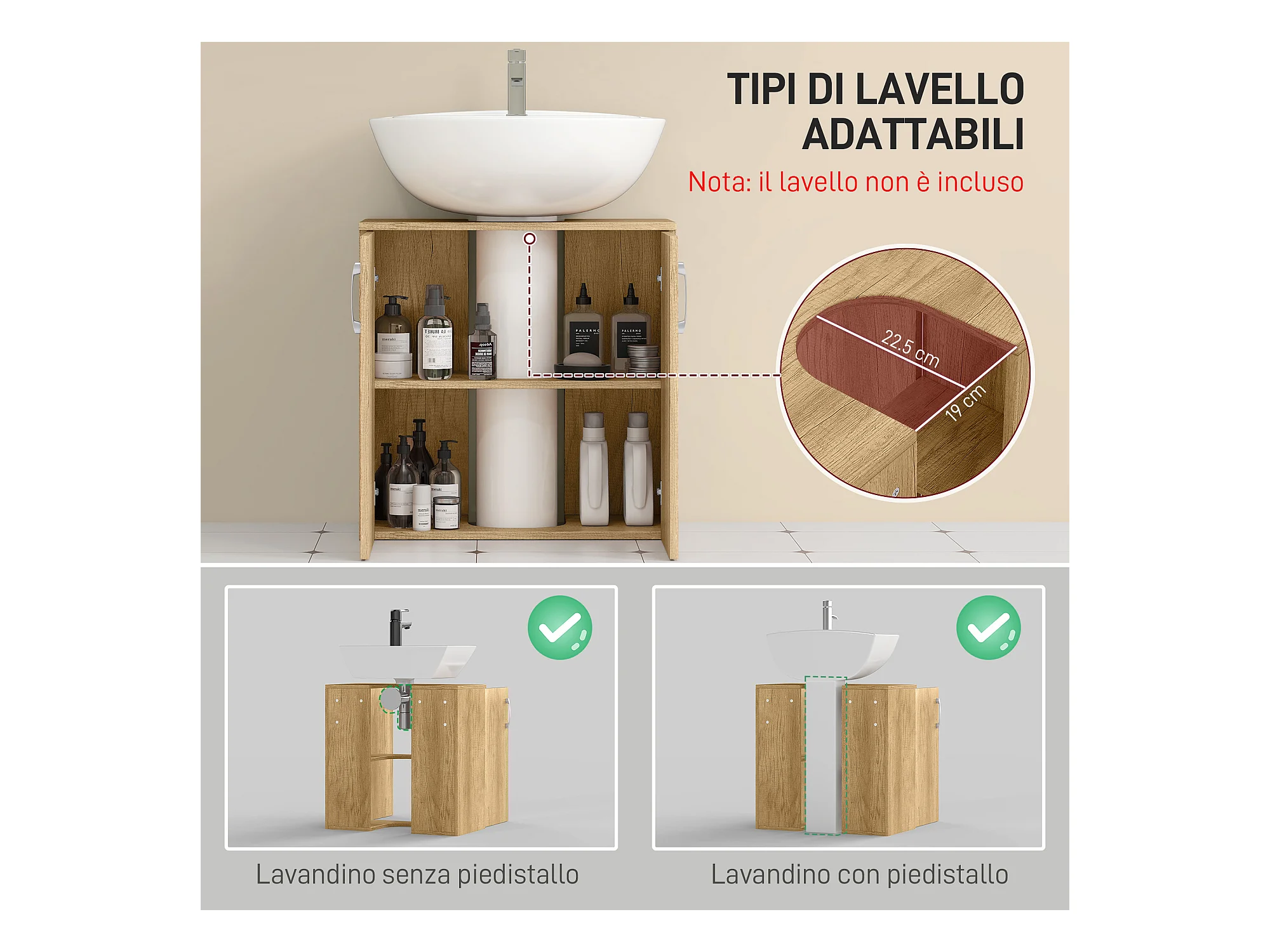 Mobile bagno sottolavabo sospeso con 2 ante e 2 ripiani in legno