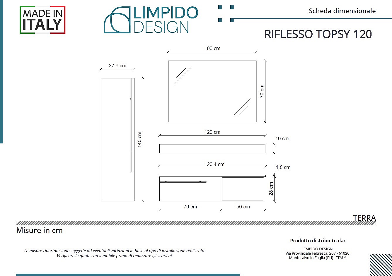 Mobile bagno Top con lavabo in appoggio vano poro noce cassettiera e colonna bianco luce, specchio lampada e p.asciugamano L 120 x P 46