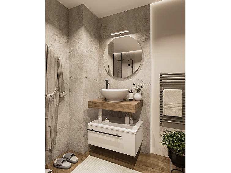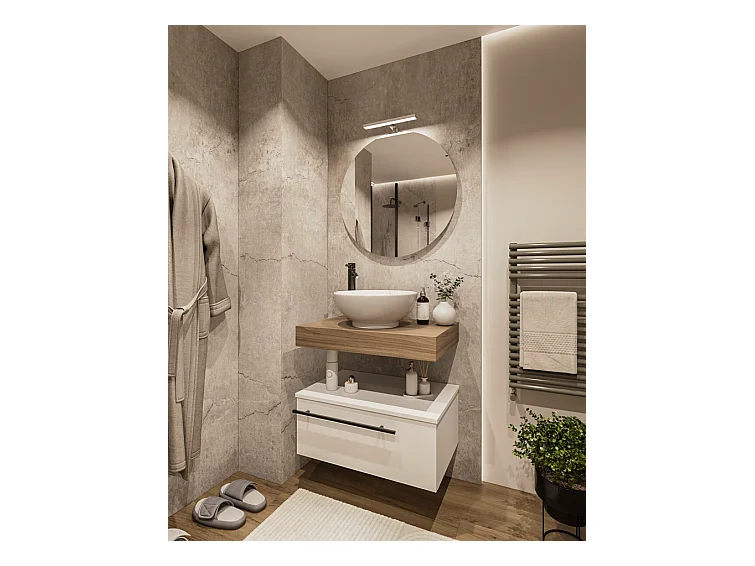 Mobile bagno Top L 70 x P 46 con lavabo in appoggio poro noce cassettiera bianco luce specchio