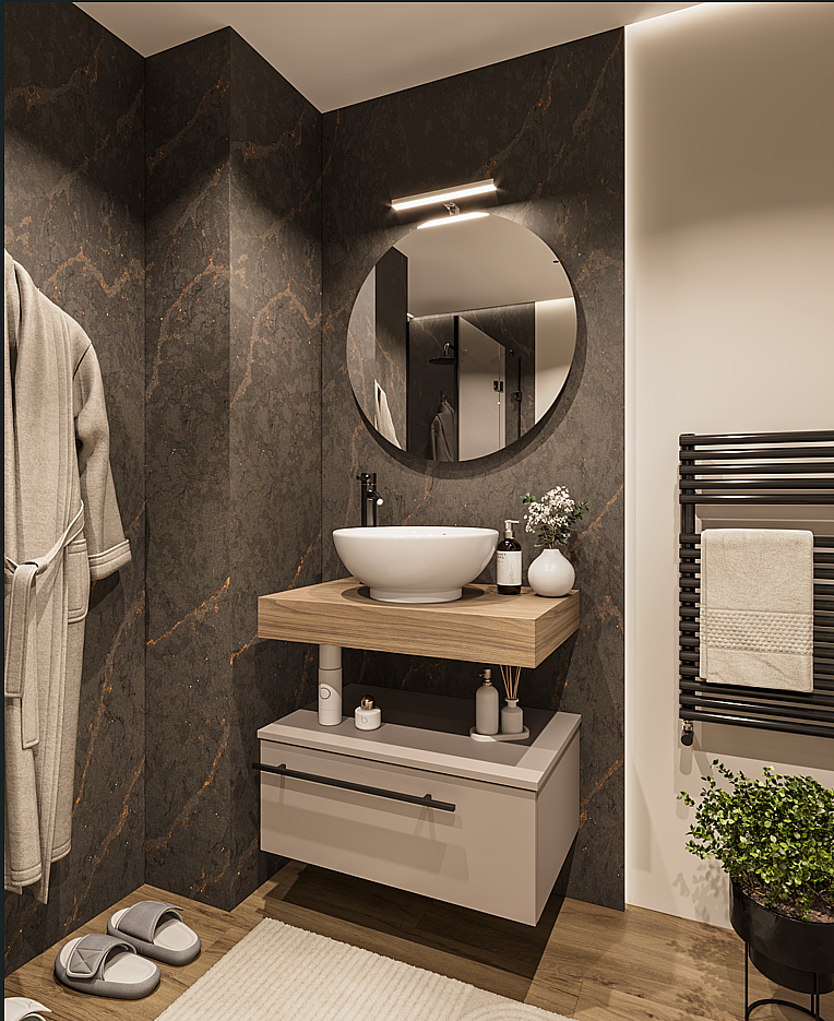 Mobile bagno Top L 70 x P 46 con lavabo in appoggio poro noce cassettiera tortora milano specchio
