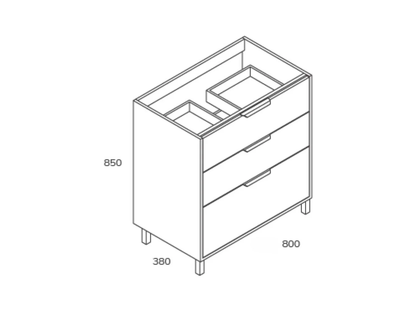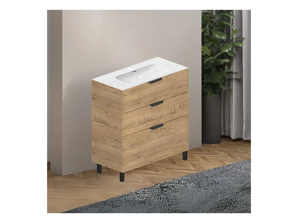 Mobile bagno Triana rovere con 3 cassettoni e lavabo 80x38x85H