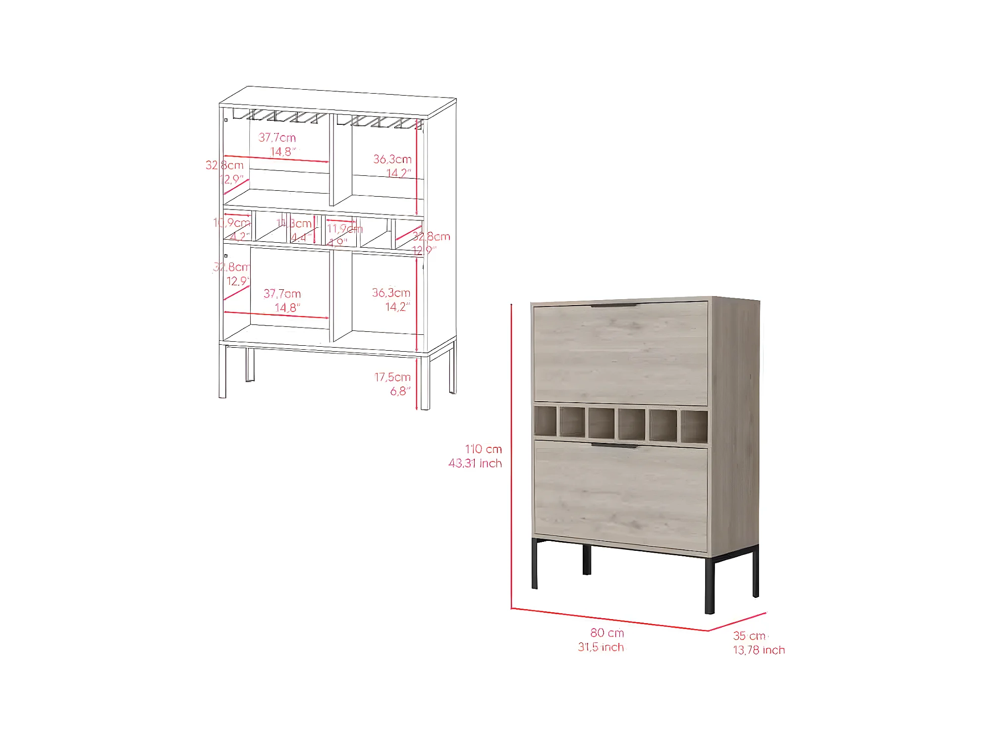 Carrello bar con portabottiglie e ruote , 82.09 cm X 59.99 cm X 37.49 cm , Cinder