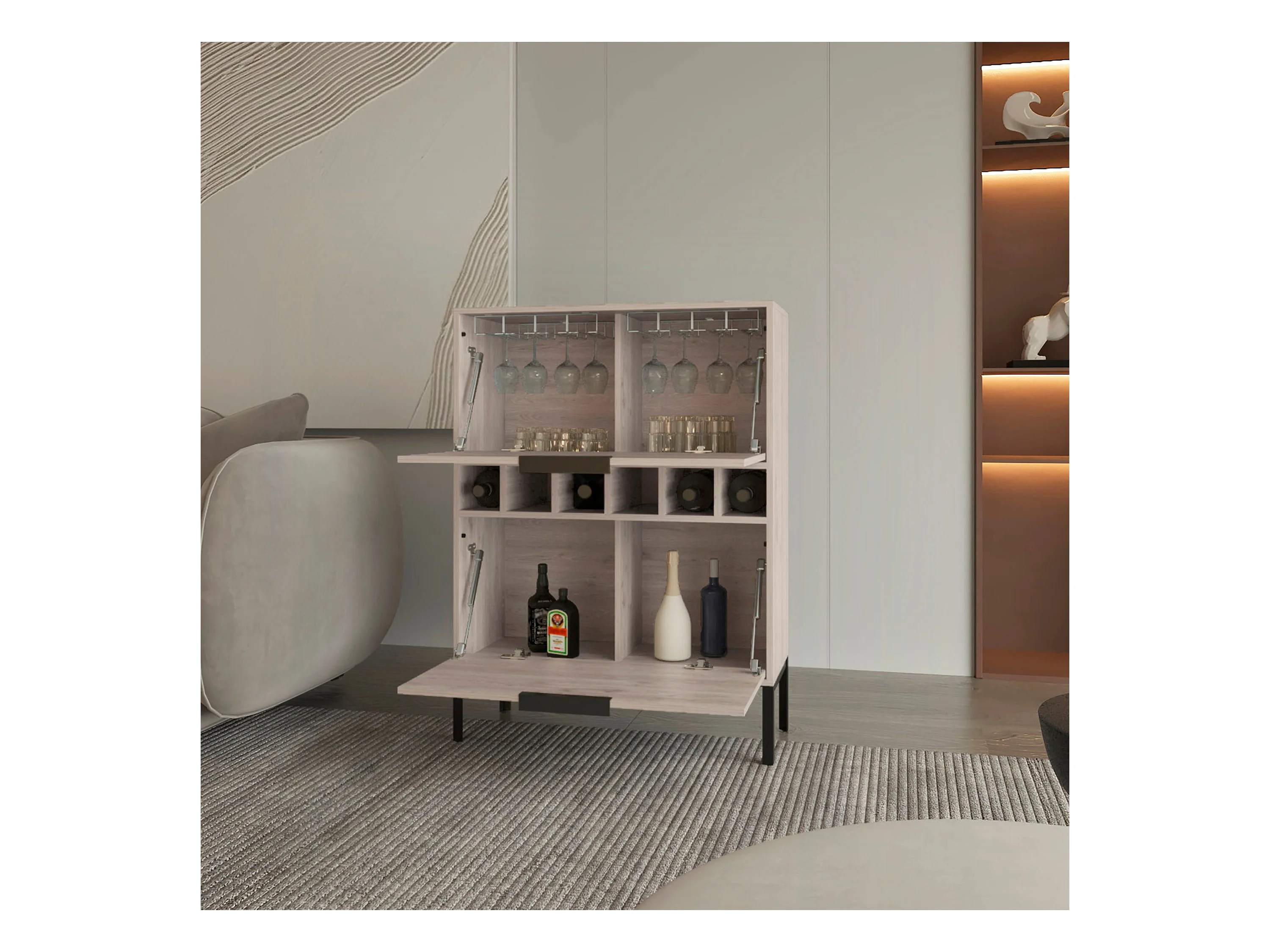 Mobile bar Lyrata in melamina con portabottiglie, portabicchieri e 4 ripiani , 110 cm X 80 cm X 35 cm , Grigio / argento