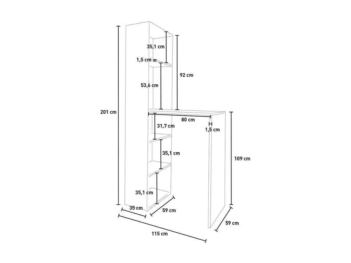 Mobile bar moderno tavolo alto per sgabelli con ripiani h109 Tanul - Bianco