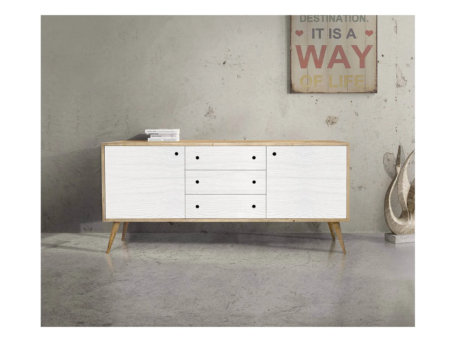 MilaniHome.it - Cassettiera Abete Spazzolato Cm 110x45x95 H Naturale E Bianco Per Soggiorno Salotto Camera Da Letto Studio Ufficiodi coloreBianco