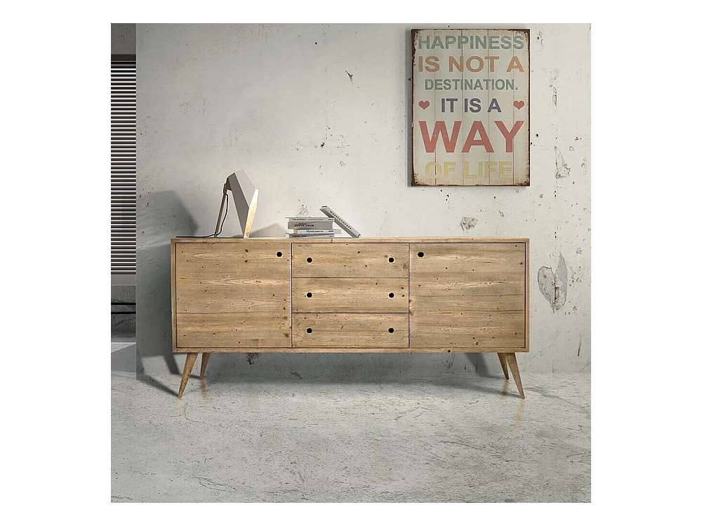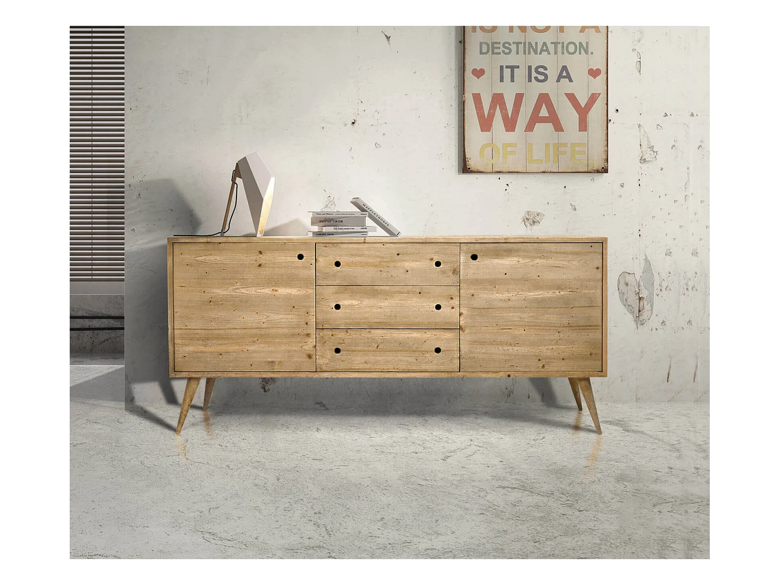 MilaniHome.it - cassettiera con 2 cassetti e 2 ante in legno di pino riciclato di design moderno in legno invecchiato pezzo unico cm 105x48x113 hdi coloreMarrone